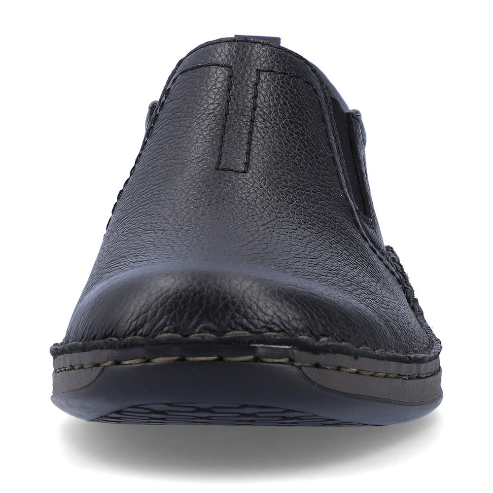 Pánske kožené mokasíny z kolekcie značky Rieker. Priestorný strih. Sú vybavené vsadenými gumičkami pre pohodlné vyzúvanie a obúvanie. Pohodlná, ľahká konštrukcia s mäkkou stielkou zaistí príjemnú chôdzu, rovnako ako aj ohybná podošva. Vďaka jej vlastnostiam je táto obuv vyhľadávaná všetkými, ktorí musia počas dňa dlho stáť a chodiť. Kožené topánky sú zaručenou klasikou, zaručia Vám vysokú kvalitu a ide o pár, ktorý vám vydrží niekoľko sezón. Pružná podošva dokonale dopĺňa športový dizajn, postará sa o Vaše pohodlie na každom kroku, tlmí nárazy a otrasy. Ak denne trávite na nohách viac času tak značka Rieker je skutočne tou pravou voľbou pre Vás. Ide doslova o vychádzkovú obuv ktorá vydrží v plnej kvalite naozaj veľmi dlhý čas. Po vyčerpávajúcom a náročnom dni sa budú Vaše nohy cítiť svieže a oddýchnuté a to najmä vďaka ľahkým materiálom.