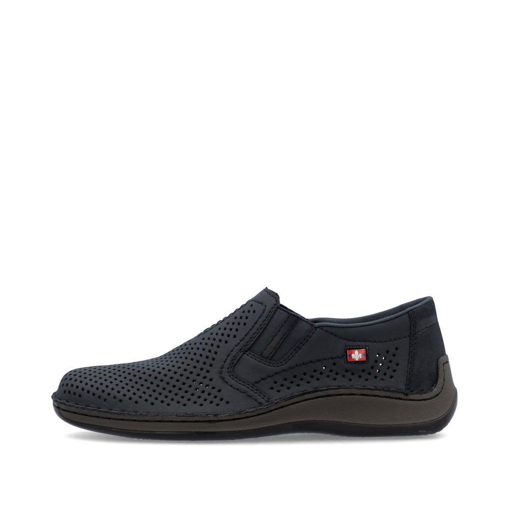 Pánske kožené mokasíny z kolekcie značky Rieker. Priestorný strih. Sú vybavené vsadenými gumičkami pre pohodlné vyzúvanie a obúvanie. Pohodlná, ľahká konštrukcia s mäkkou stielkou zaistí príjemnú chôdzu, rovnako ako aj ohybná podošva. Vďaka jej vlastnostiam je táto obuv vyhľadávaná všetkými, ktorí musia počas dňa dlho stáť a chodiť. Kožené topánky sú zaručenou klasikou, zaručia Vám vysokú kvalitu a ide o pár, ktorý vám vydrží niekoľko sezón. Pružná podošva dokonale dopĺňa športový dizajn, postará sa o Vaše pohodlie na každom kroku, tlmí nárazy a otrasy. Ak denne trávite na nohách viac času tak značka Rieker je skutočne tou pravou voľbou pre Vás. Ide doslova o vychádzkovú obuv ktorá vydrží v plnej kvalite naozaj veľmi dlhý čas. Po vyčerpávajúcom a náročnom dni sa budú Vaše nohy cítiť svieže a oddýchnuté a to najmä vďaka ľahkým materiálom.