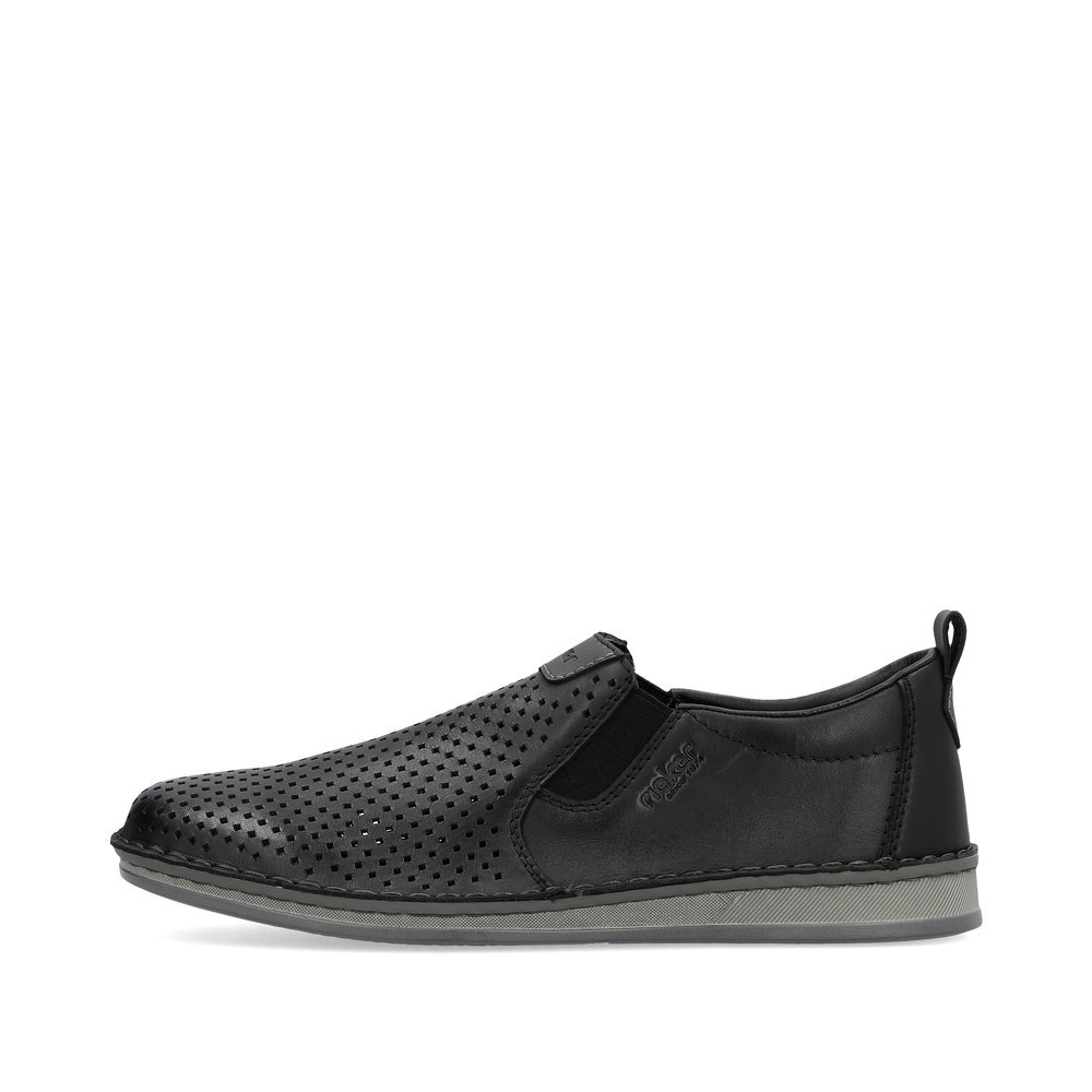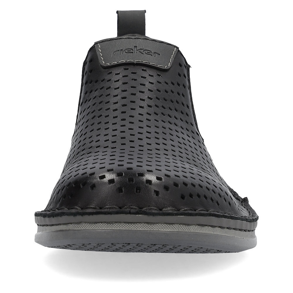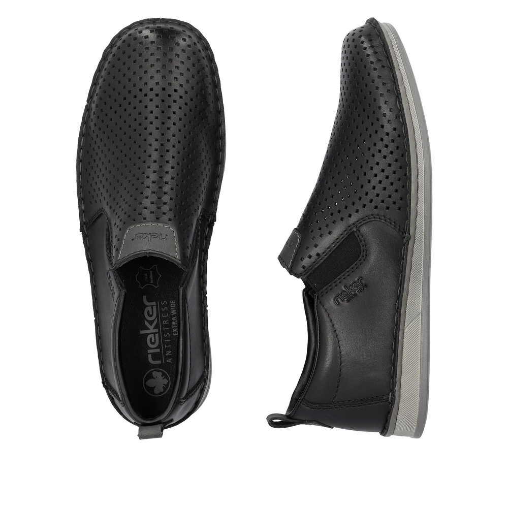 Pánske kožené mokasíny z kolekcie značky Rieker. Zdobené štepovaním. Sú vybavené vsadenými gumičkami pre pohodlné vyzúvanie a obúvanie. Dizajnová podošva sa postará o Vaše pohodlie na každom kroku. Pre všetkých, ktorí sa chcú v topánkach cítiť pohodlne a štýlovo. Perforovanie - dierkovanie v hornej časti zvršku dávajú topánkam svoj osobitý, módny a vzdušný vzhľad. Tento model oceníte pri ceste do práce, ale aj pri bežných pochôdzkach. Ak denne trávite na nohách viac času tak značka Rieker je skutočne tou pravou voľbou pre Vás. Pohodlná, ľahká konštrukcia s mäkkou koženou stielkou zaistí príjemnú chôdzu, rovnako ako aj ohybná podošva. Z kolekcie Antistress. Protistresový systém znamená pohodlie pri každom kroku vďaka ľahkej, flexibilnej podrážke.