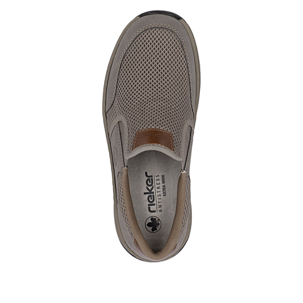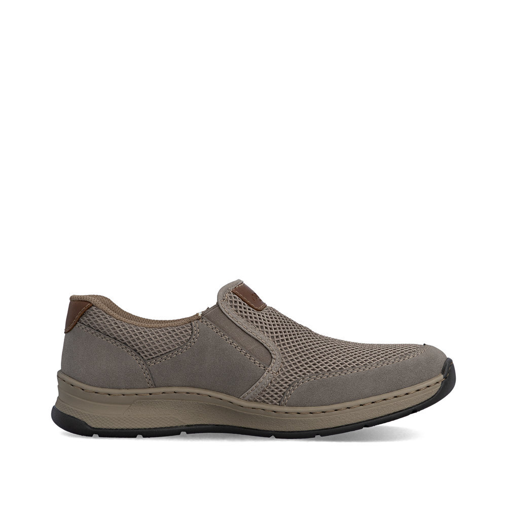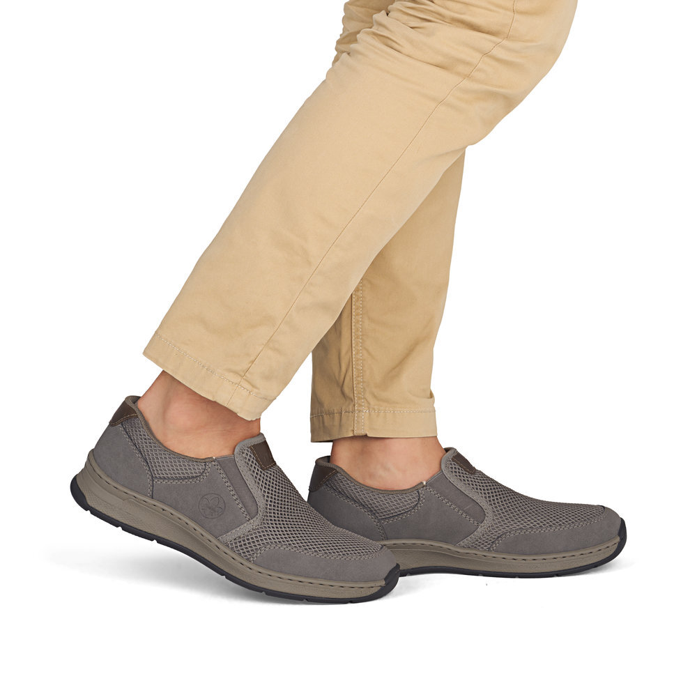 Pánske mokasíny z kolekcie značky Rieker. Priestorný strih. Sú vybavené vsadenými gumičkami pre pohodlné vyzúvanie a obúvanie. Komfortný model, ktorý počas letných dní zaiste využijete. Pohodlná, ľahká konštrukcia s mäkkou stielkou zaistí príjemnú chôdzu, rovnako ako aj ohybná podošva. Vďaka jej vlastnostiam je táto obuv vyhľadávaná všetkými, ktorí musia počas dňa dlho stáť a chodiť. Pružná podošva dokonale dopĺňa športový dizajn, postará sa o Vaše pohodlie na každom kroku, tlmí nárazy a otrasy. Ak denne trávite na nohách viac času tak značka Rieker je skutočne tou pravou voľbou pre Vás. Ide doslova o vychádzkovú obuv ktorá vydrží v plnej kvalite naozaj veľmi dlhý čas. Po vyčerpávajúcom a náročnom dni sa budú Vaše nohy cítiť svieže a oddýchnuté a to najmä vďaka ľahkým materiálom.