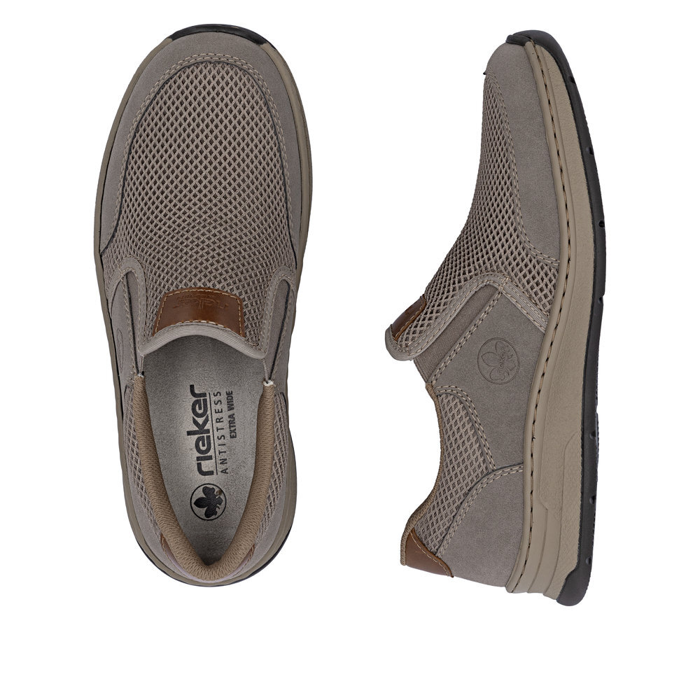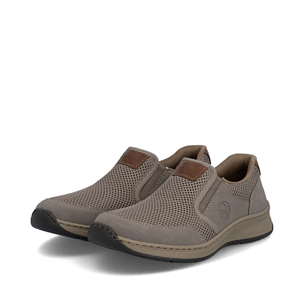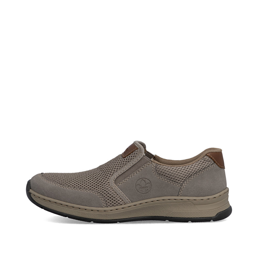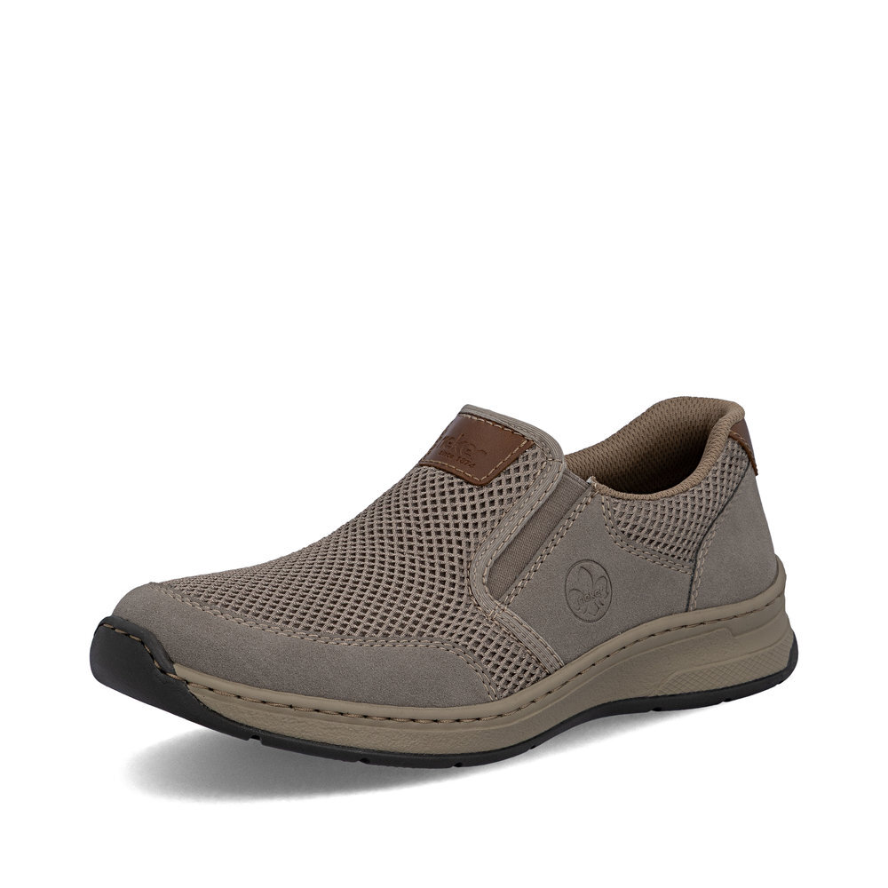 Pánske mokasíny z kolekcie značky Rieker. Priestorný strih. Sú vybavené vsadenými gumičkami pre pohodlné vyzúvanie a obúvanie. Komfortný model, ktorý počas letných dní zaiste využijete. Pohodlná, ľahká konštrukcia s mäkkou stielkou zaistí príjemnú chôdzu, rovnako ako aj ohybná podošva. Vďaka jej vlastnostiam je táto obuv vyhľadávaná všetkými, ktorí musia počas dňa dlho stáť a chodiť. Pružná podošva dokonale dopĺňa športový dizajn, postará sa o Vaše pohodlie na každom kroku, tlmí nárazy a otrasy. Ak denne trávite na nohách viac času tak značka Rieker je skutočne tou pravou voľbou pre Vás. Ide doslova o vychádzkovú obuv ktorá vydrží v plnej kvalite naozaj veľmi dlhý čas. Po vyčerpávajúcom a náročnom dni sa budú Vaše nohy cítiť svieže a oddýchnuté a to najmä vďaka ľahkým materiálom.