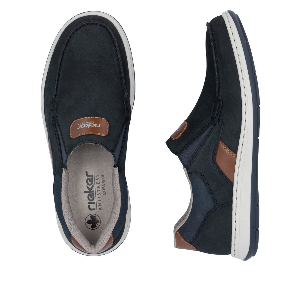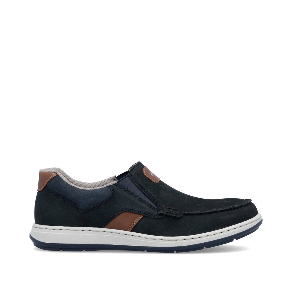 Pánske kožené mokasíny z kolekcie značky Rieker. Priestorný strih. Sú vybavené vsadenými gumičkami pre pohodlné vyzúvanie a obúvanie. Pohodlná, ľahká konštrukcia s mäkkou stielkou zaistí príjemnú chôdzu, rovnako ako aj ohybná podošva. Vďaka jej vlastnostiam je táto obuv vyhľadávaná všetkými, ktorí musia počas dňa dlho stáť a chodiť. Kožené topánky sú zaručenou klasikou, zaručia Vám vysokú kvalitu a ide o pár, ktorý vám vydrží niekoľko sezón. Pružná podošva dokonale dopĺňa športový dizajn, postará sa o Vaše pohodlie na každom kroku, tlmí nárazy a otrasy. Ak denne trávite na nohách viac času tak značka Rieker je skutočne tou pravou voľbou pre Vás. Ide doslova o vychádzkovú obuv ktorá vydrží v plnej kvalite naozaj veľmi dlhý čas. Po vyčerpávajúcom a náročnom dni sa budú Vaše nohy cítiť svieže a oddýchnuté a to najmä vďaka ľahkým materiálom.