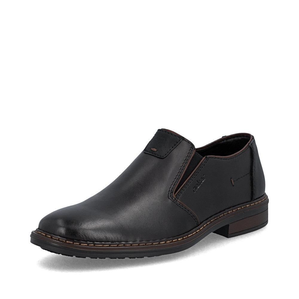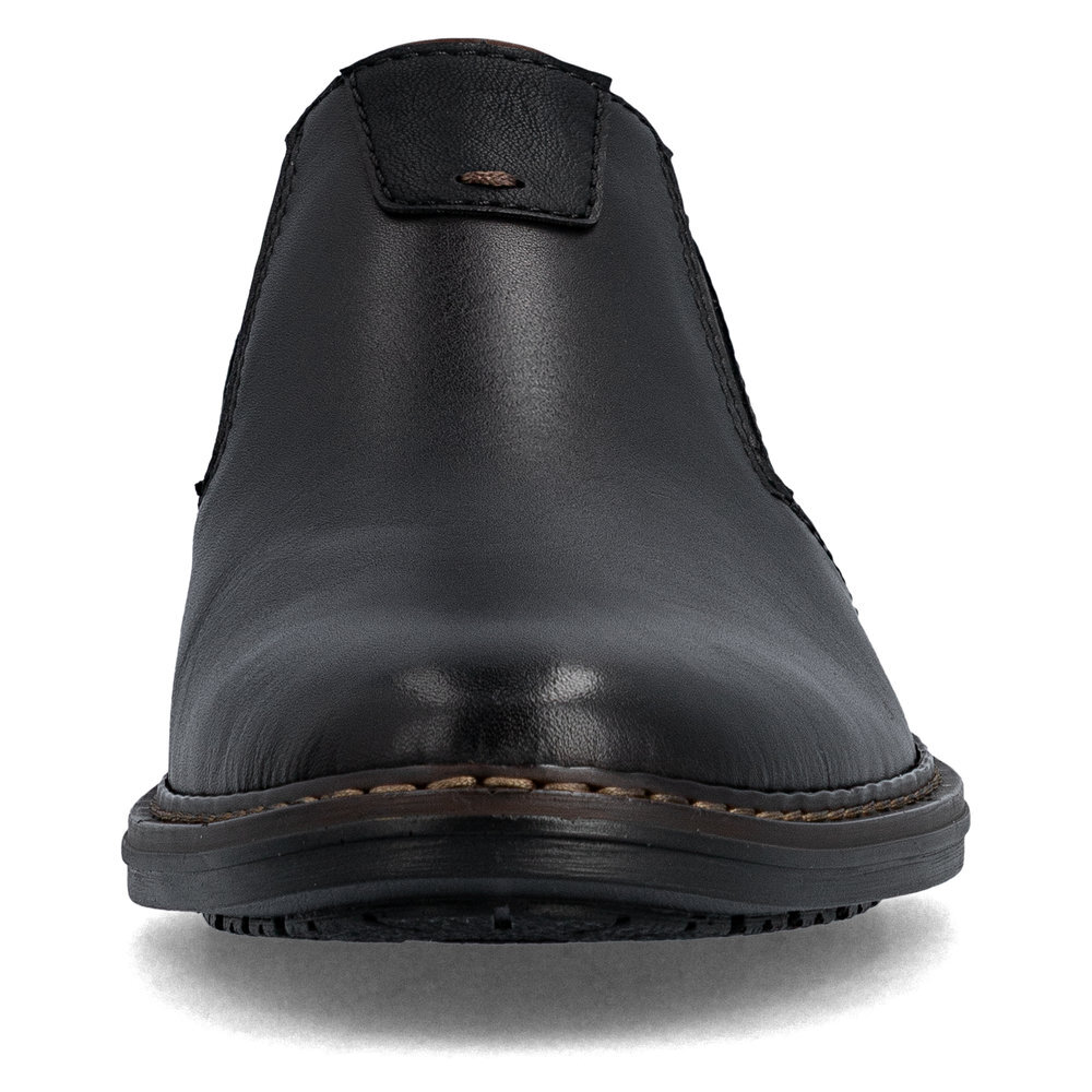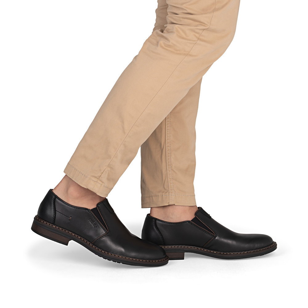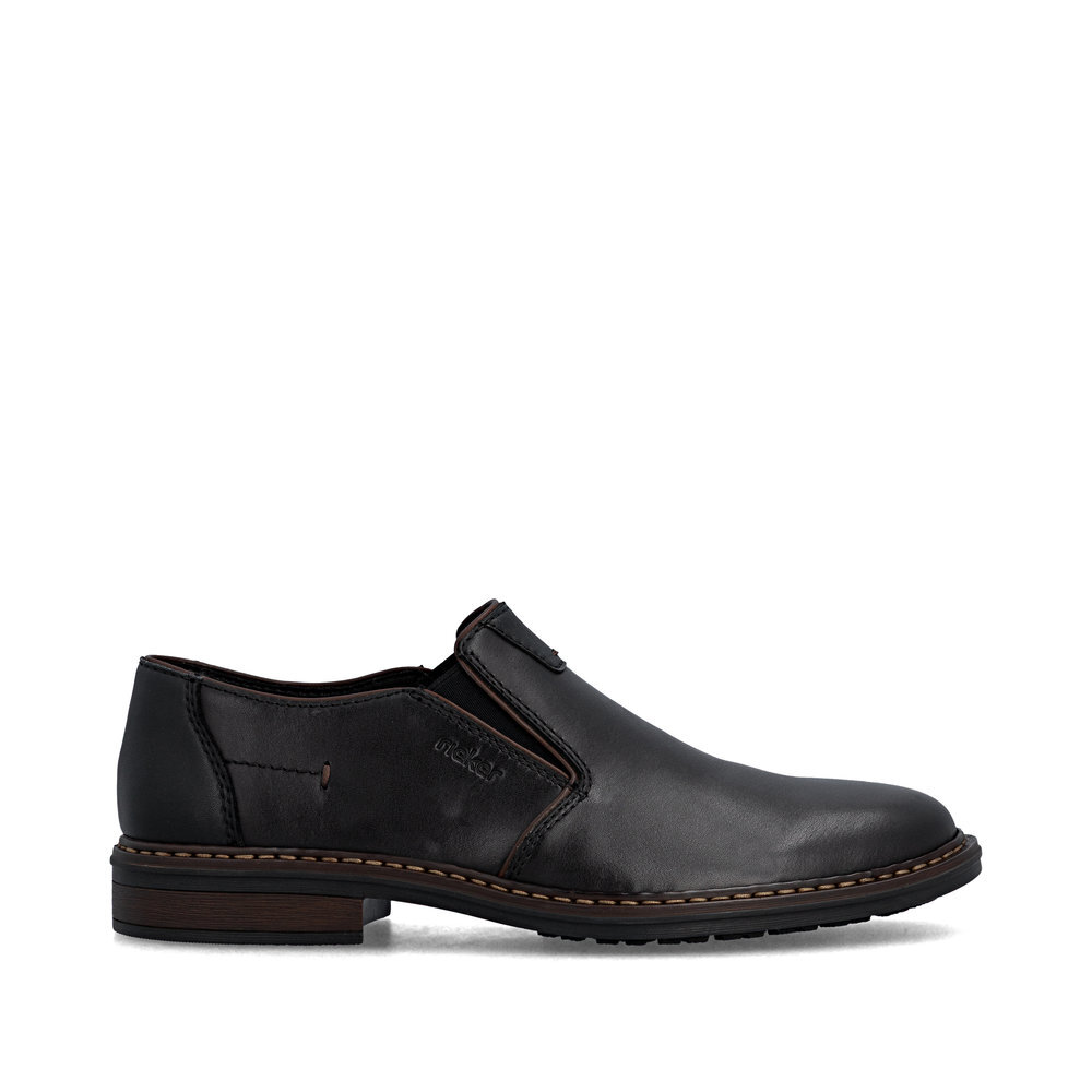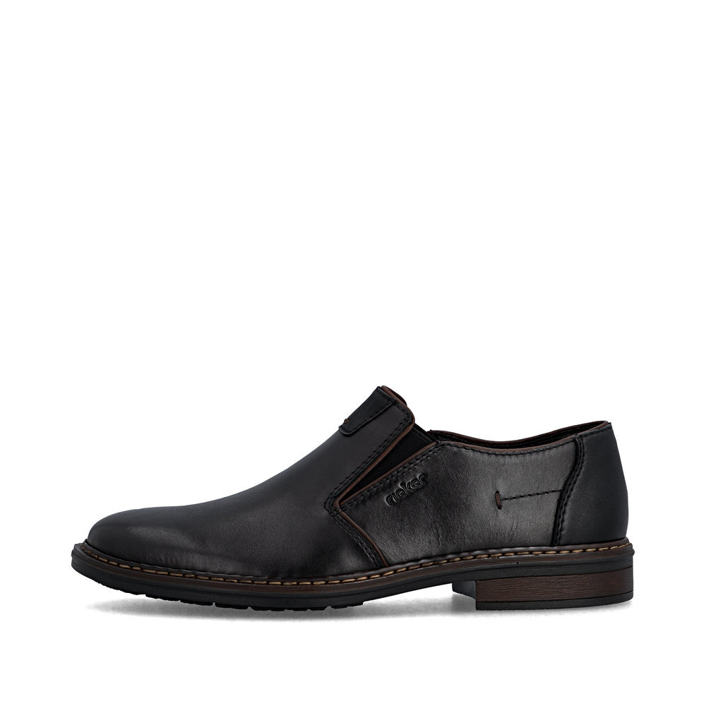 Pánske kožené mokasíny z kolekcie značky Rieker. Priestorný strih. Sú vybavené vsadenými gumičkami pre pohodlné vyzúvanie a obúvanie. Pohodlná, ľahká konštrukcia s mäkkou stielkou zaistí príjemnú chôdzu, rovnako ako aj ohybná podošva. Vďaka jej vlastnostiam je táto obuv vyhľadávaná všetkými, ktorí musia počas dňa dlho stáť a chodiť. Kožené topánky sú zaručenou klasikou, zaručia Vám vysokú kvalitu a ide o pár, ktorý vám vydrží niekoľko sezón. Pružná podošva dokonale dopĺňa športový dizajn, postará sa o Vaše pohodlie na každom kroku, tlmí nárazy a otrasy. Ak denne trávite na nohách viac času tak značka Rieker je skutočne tou pravou voľbou pre Vás. Ide doslova o vychádzkovú obuv ktorá vydrží v plnej kvalite naozaj veľmi dlhý čas. Po vyčerpávajúcom a náročnom dni sa budú Vaše nohy cítiť svieže a oddýchnuté a to najmä vďaka ľahkým materiálom.