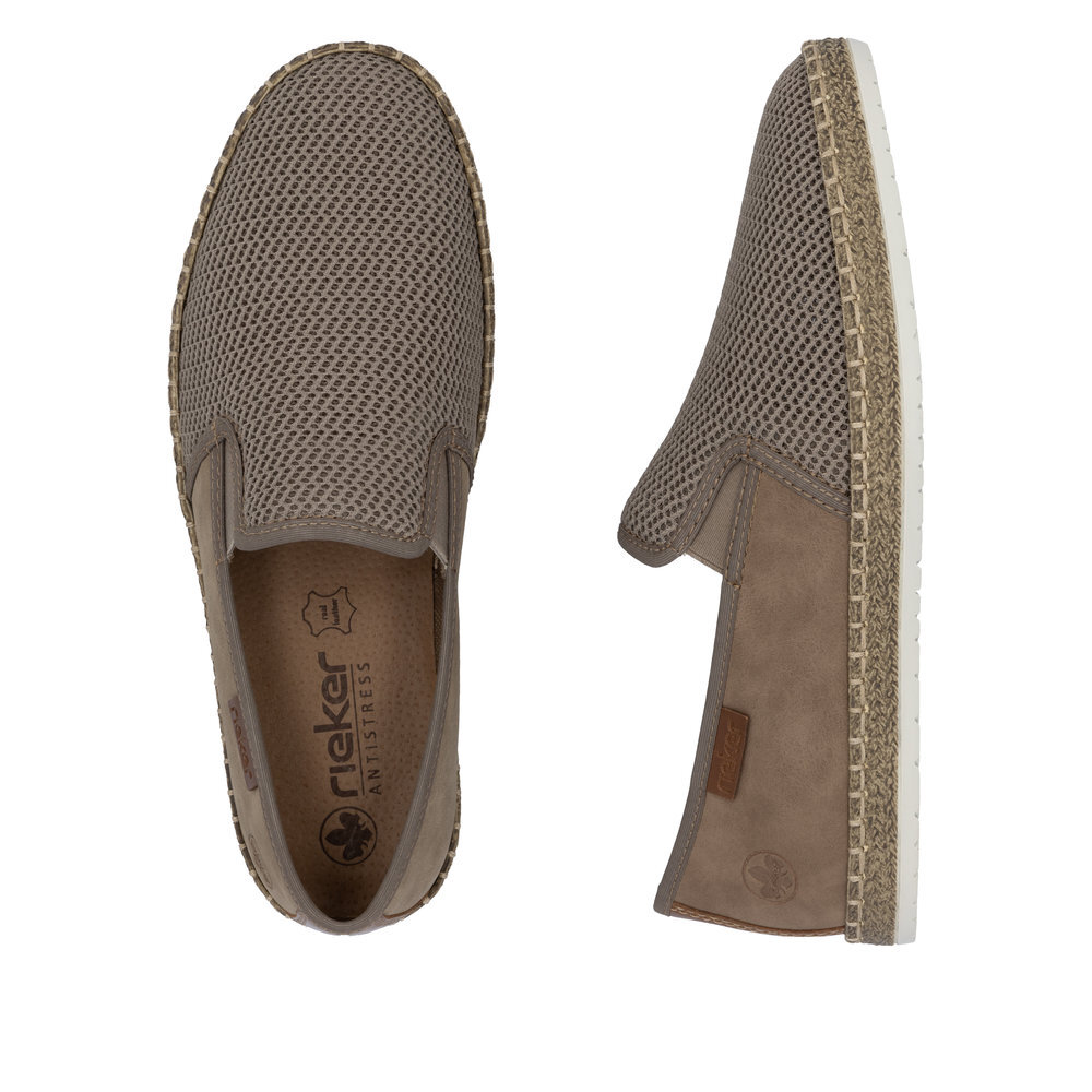 Pánske mokasíny z kolekcie značky Rieker. Priestorný strih. Sú vybavené vsadenými gumičkami pre pohodlné vyzúvanie a obúvanie. Komfortný model, ktorý počas letných dní zaiste využijete. Pohodlná, ľahká konštrukcia s mäkkou stielkou zaistí príjemnú chôdzu, rovnako ako aj ohybná podošva. Vďaka jej vlastnostiam je táto obuv vyhľadávaná všetkými, ktorí musia počas dňa dlho stáť a chodiť. Pružná podošva dokonale dopĺňa športový dizajn, postará sa o Vaše pohodlie na každom kroku, tlmí nárazy a otrasy. Ak denne trávite na nohách viac času tak značka Rieker je skutočne tou pravou voľbou pre Vás. Ide doslova o vychádzkovú obuv ktorá vydrží v plnej kvalite naozaj veľmi dlhý čas. Po vyčerpávajúcom a náročnom dni sa budú Vaše nohy cítiť svieže a oddýchnuté a to najmä vďaka ľahkým materiálom.