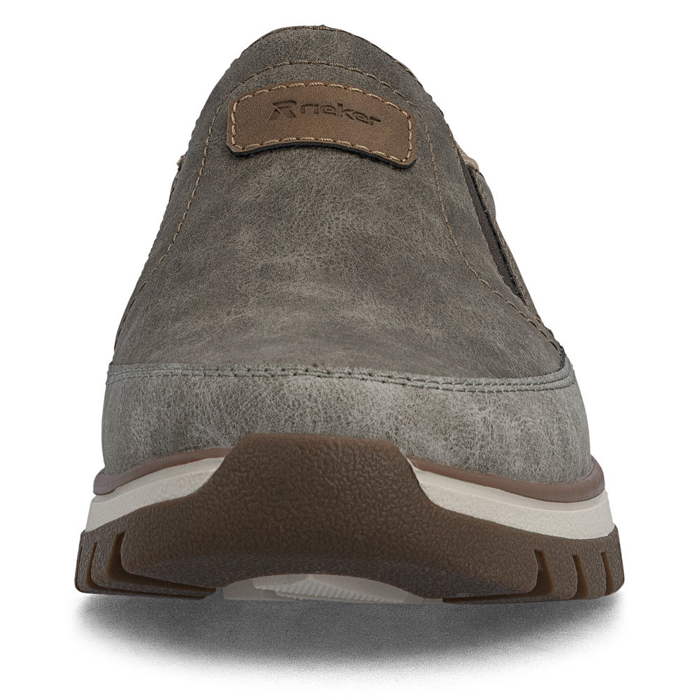 Pánske mokasíny z kolekcie značky Rieker. Priestorný strih. Sú vybavené vsadenými gumičkami pre pohodlné vyzúvanie a obúvanie. Pohodlná, ľahká konštrukcia s mäkkou stielkou zaistí príjemnú chôdzu, rovnako ako aj ohybná podošva. Vďaka jej vlastnostiam je táto obuv vyhľadávaná všetkými, ktorí musia počas dňa dlho stáť a chodiť. Pružná podošva dokonale dopĺňa športový dizajn, postará sa o Vaše pohodlie na každom kroku, tlmí nárazy a otrasy. Ak denne trávite na nohách viac času tak značka Rieker je skutočne tou pravou voľbou pre Vás. Ide doslova o vychádzkovú obuv ktorá vydrží v plnej kvalite naozaj veľmi dlhý čas. Po vyčerpávajúcom a náročnom dni sa budú Vaše nohy cítiť svieže a oddýchnuté a to najmä vďaka ľahkým materiálom.