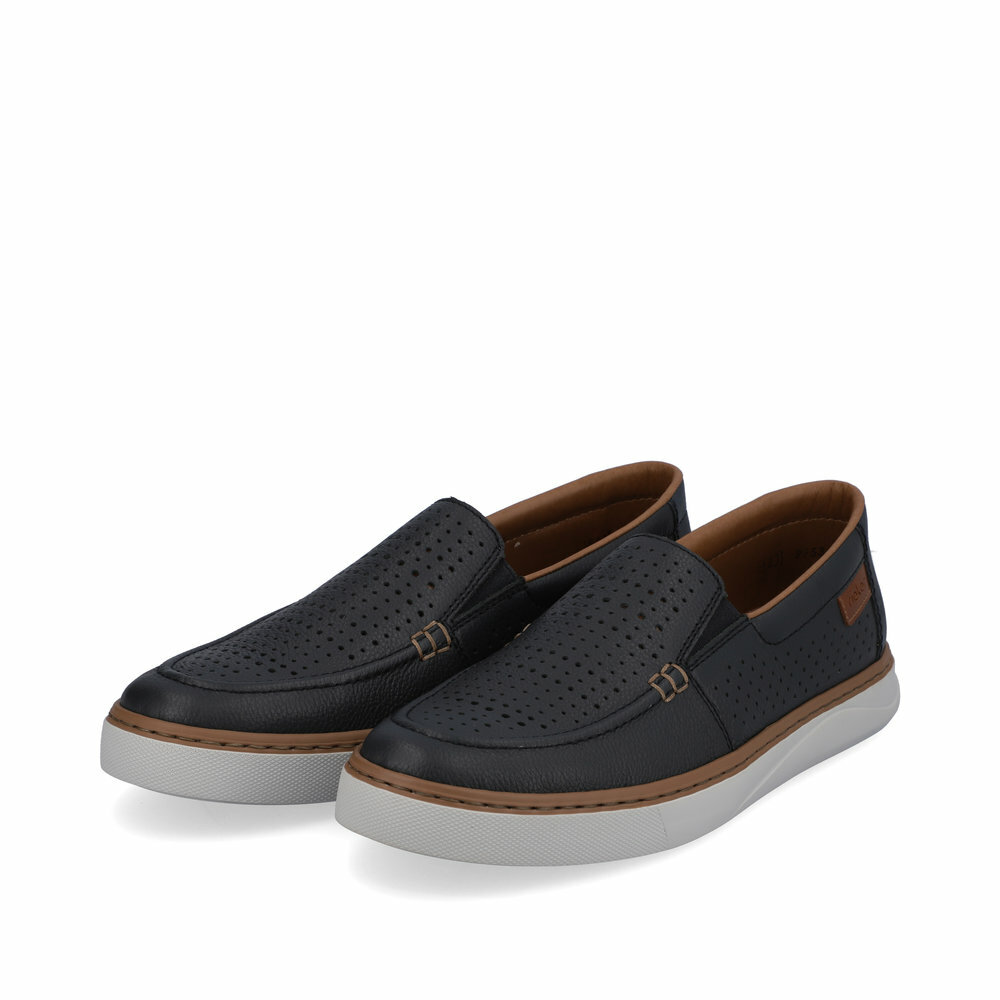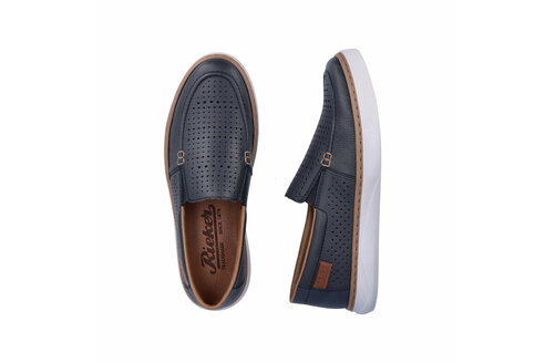 Pánske kožené mokasíny z kolekcie Rieker. Jednoduché obúvanie a prispôsobenie sa podľa požiadaviek zaistia všité pružné vsadky v oblasti priehlavku. Mäkká stielka, ktorá podporí príjemný došľap, nadväzuje na zabrúsenú pätnú časť. Pružná a robustná podošva dokonale dopĺňa športový dizajn, postará sa o Vaše pohodlie na každom kroku, tlmí nárazy a otrasy. Vďaka jej vlastnostiam je táto obuv vyhľadávaná všetkými, ktorí musia počas dňa dlho stáť a chodiť. Ak denne trávite na nohách viac času tak značka Rieker je skutočne tou pravou voľbou pre Vás. Ide doslova o vychádzkovú obuv ktorá vydrží v plnej kvalite naozaj veľmi dlhý čas. Po vyčerpávajúcom a náročnom dni sa budú Vaše nohy cítiť svieže a oddýchnuté a to najmä vďaka ľahkým materiálom.