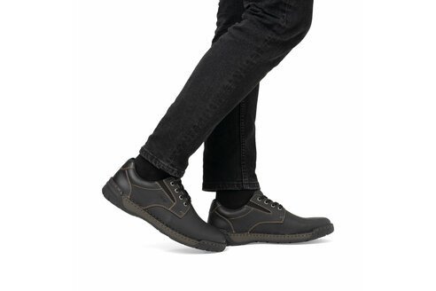 Pánske kožené topánky na šnurovanie z kolekcie značky Rieker. Sú vybavené vsadenými gumičkami pre pohodlné vyzúvanie a obúvanie. Vďaka pevnému šnurovaniu tento model topánok pevne priľne k nohe po celej dĺžke. Viazanie zároveň esteticky dotvára zvršok obuvi v klasickom štýle. Pružná podošva dokonale dopĺňa dizajn, postará sa o Vaše pohodlie na každom kroku. Vďaka unikátnym vlastnostiam podošvy zažijete jedinečný pocit ľahkosti pri chôdzi. Ak denne trávite na nohách viac času tak značka Rieker je skutočne tou pravou voľbou pre Vás. Ide doslova o vychádzkovú obuv ktorá vydrží v plnej kvalite naozaj veľmi dlhý čas.