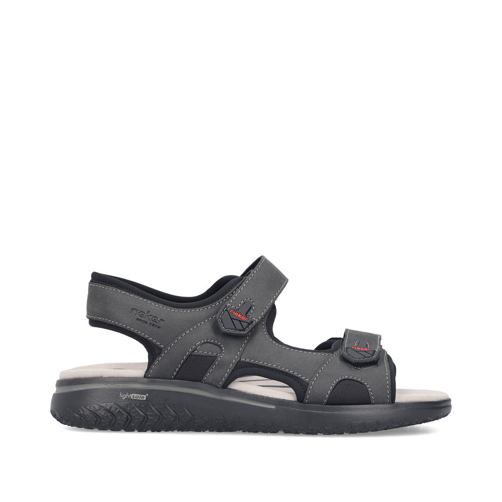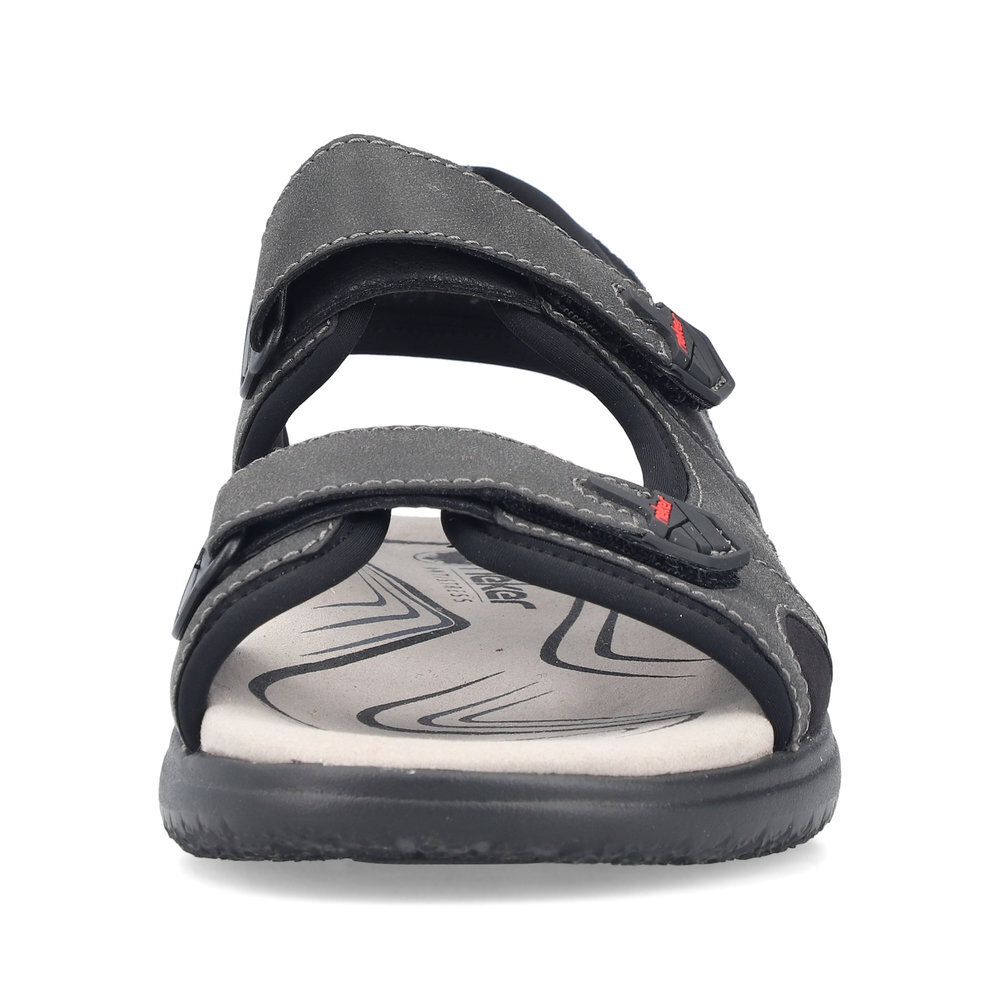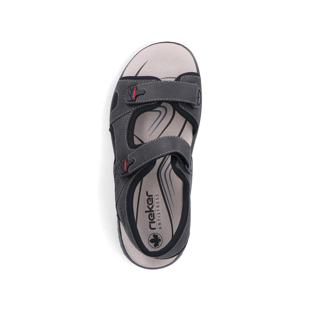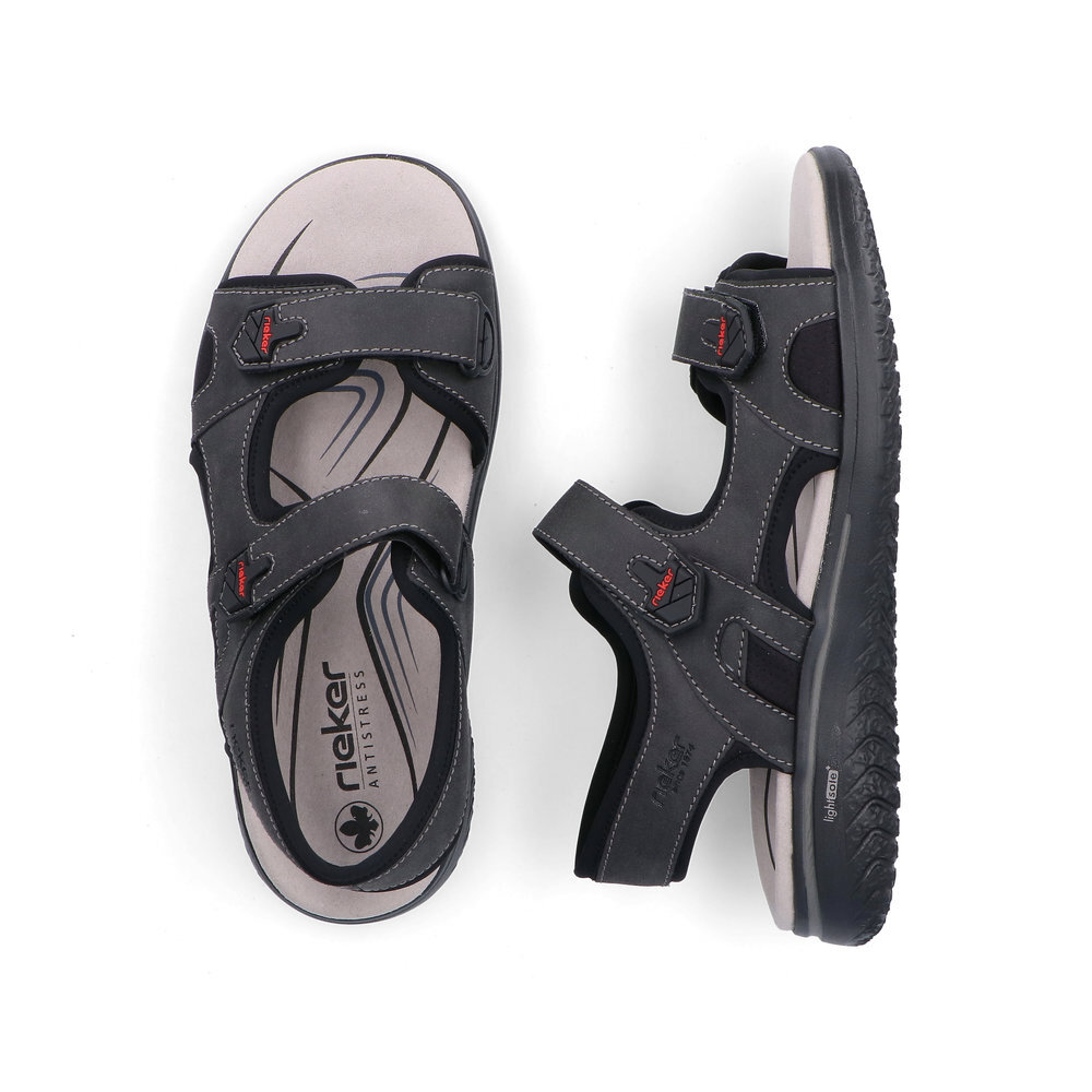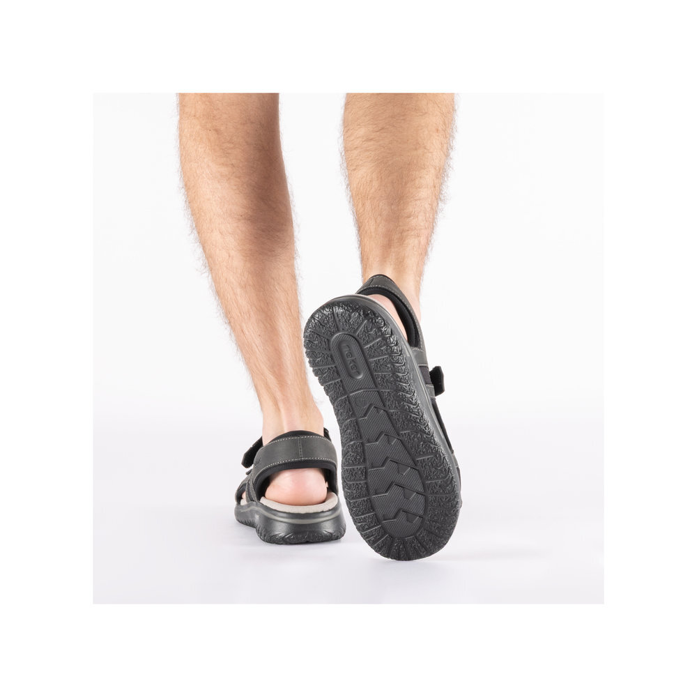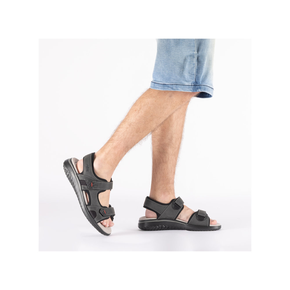 Pánske sandále z kolekcie značky Rieker. S individuálne nastaviteľnými uzávermi na suchý zips poskytujú presné prispôsobenie a sandále sú tak pevné a stabilné na nohe. Dizajnová podošva sa postará o Vaše pohodlie na každom kroku. Tento model oceníte pri ceste do práce, ale aj pri bežných pochôdzkach. Pružná a robustná podošva dokonale dopĺňa športový dizajn, postará sa o Vaše pohodlie na každom kroku, tlmí nárazy a otrasy. Vďaka jej vlastnostiam je táto obuv vyhľadávaná všetkými, ktorí musia počas dňa dlho stáť a chodiť. Ak denne trávite na nohách viac času tak značka Rieker je skutočne tou pravou voľbou pre Vás. Ide doslova o vychádzkovú obuv ktorá vydrží v plnej kvalite naozaj veľmi dlhý čas. Po vyčerpávajúcom a náročnom dni sa budú Vaše nohy cítiť svieže a oddýchnuté a to najmä vďaka ľahkým materiálom.