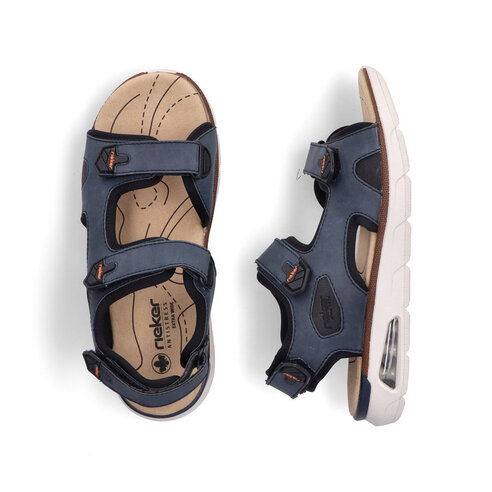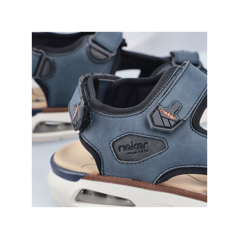 Pánske športové sandále z kolekcie značky Rieker. S individuálne nastaviteľnými uzávermi na suchý zips poskytujú presné prispôsobenie a sandále sú tak pevné a stabilné na nohe. Dizajnová podošva sa postará o Vaše pohodlie na každom kroku. Tento model oceníte pri ceste do práce, ale aj pri bežných pochôdzkach. Pružná a robustná podošva dokonale dopĺňa športový dizajn, postará sa o Vaše pohodlie na každom kroku, tlmí nárazy a otrasy. Vďaka jej vlastnostiam je táto obuv vyhľadávaná všetkými, ktorí musia počas dňa dlho stáť a chodiť. Ak denne trávite na nohách viac času tak značka Rieker je skutočne tou pravou voľbou pre Vás. Ide doslova o vychádzkovú obuv ktorá vydrží v plnej kvalite naozaj veľmi dlhý čas. Po vyčerpávajúcom a náročnom dni sa budú Vaše nohy cítiť svieže a oddýchnuté a to najmä vďaka ľahkým materiálom.