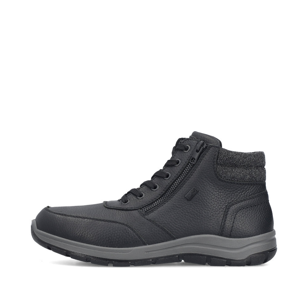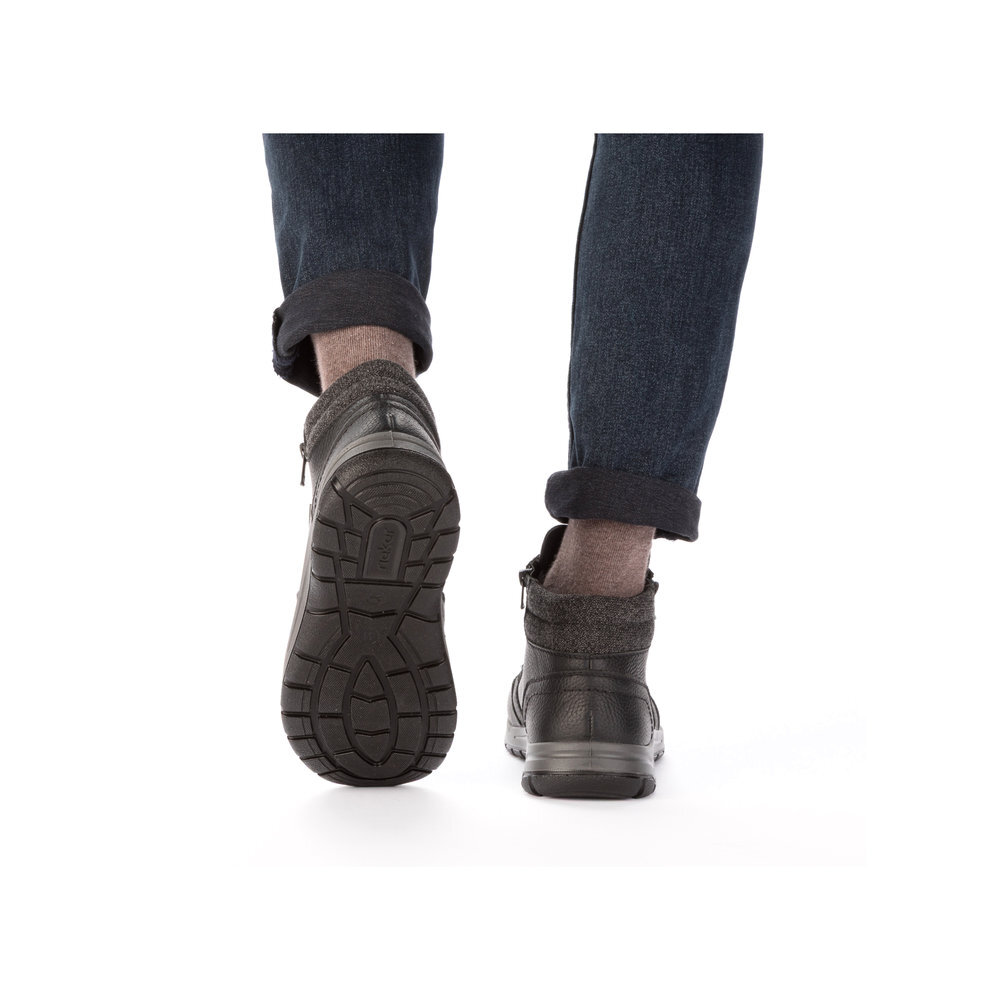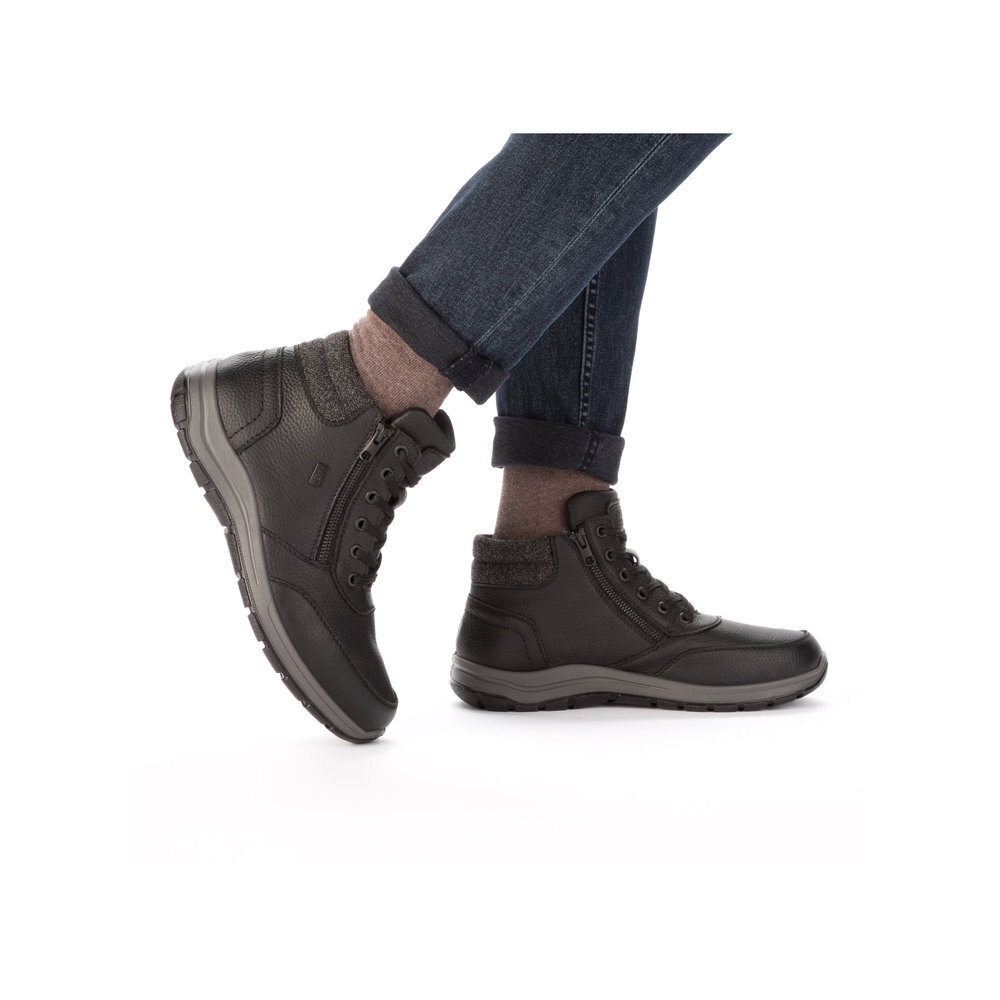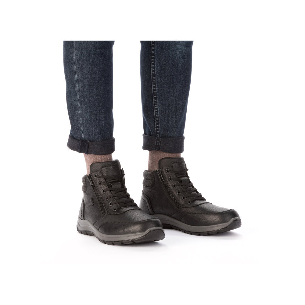 Pánske kožené zateplené topánky z kolekcie značky Rieker. Určite si ich zamilujete vďaka ich pohodlnosti a mäkkosti. Priestorný tvar špičky, mäkký a hrejivý materiál vás zahalí do pohodlia v mrazivých dňoch. Pre ľahké obutie je zapracovaný funkčný zips a šnúrky na šnurovanie. Vďaka pevnému šnurovaniu tento model topánok pevne priľne k nohe po celej dĺžke. Viazanie zároveň esteticky dotvára zvršok obuvi v klasickom štýle. Sú skvelým doplnením každého elegantného ale aj ležérneho outfitu. Kožené topánky sú zaručenou klasikou, zaručia Vám vysokú kvalitu a ide o pár, ktorý vám vydrží niekoľko sezón. Vďaka unikátnym vlastnostiam podošvy zažijete jedinečný pocit ľahkosti pri chôdzi. Ak denne trávite na nohách viac času tak značka Rieker je skutočne tou pravou voľbou pre Vás. Ide doslova o vychádzkovú obuv ktorá vydrží v plnej kvalite naozaj veľmi dlhý čas. TEX - funkčná vrstva, vďaka ktorej je topánka nepremokavá a napriek tomu priedušná.