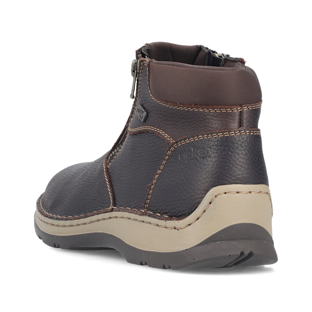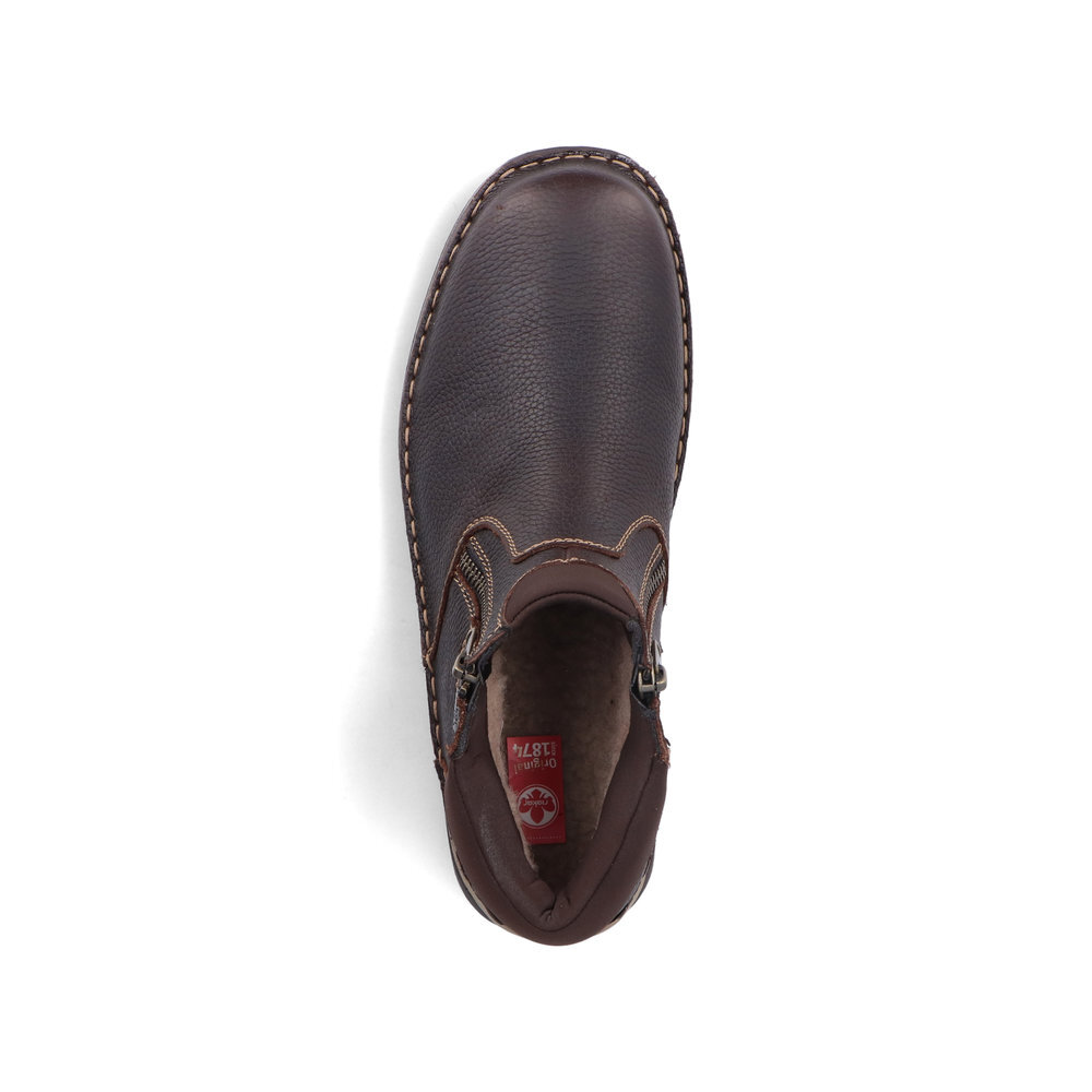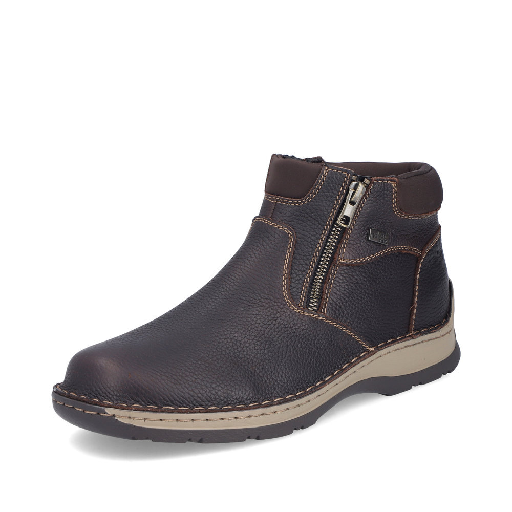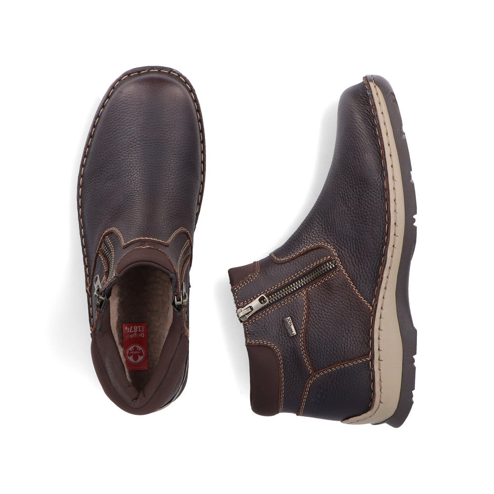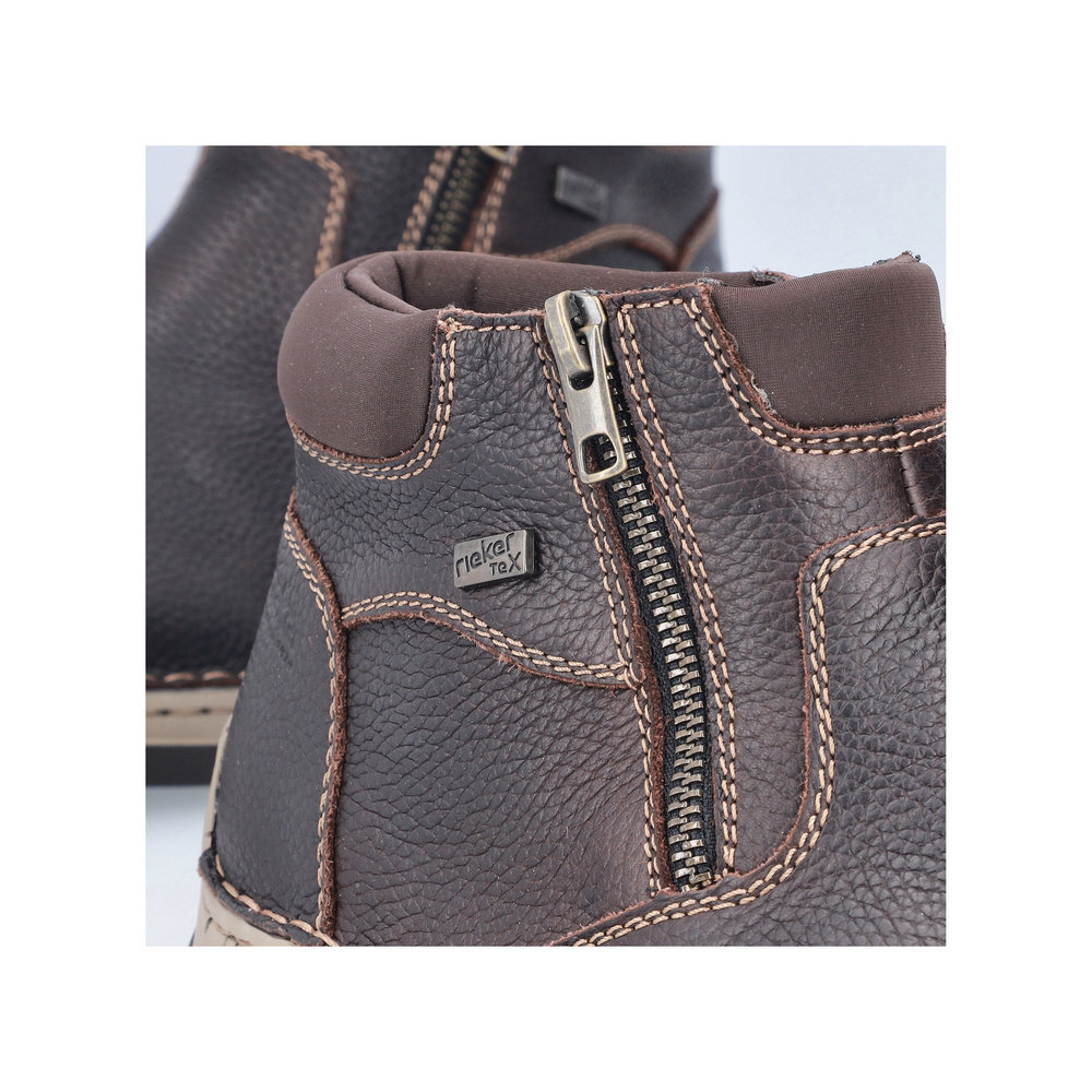 Obľúbený strih pánskych, kožených zateplených topánok z kolekcie značky Rieker. Kožené topánky sú zaručenou klasikou, zaručia Vám vysokú kvalitu a ide o pár, ktorý vám vydrží niekoľko sezón. Pre ľahké obutie je zapracovaný funkčný zips. Topánky Vám zabezpečia maximálny komfort pri celodennom nosení. Ak denne trávite na nohách viac času tak značka Rieker je skutočne tou pravou voľbou pre Vás. Ide doslova o vychádzkovú obuv ktorá vydrží v plnej kvalite naozaj veľmi dlhý čas. Po vyčerpávajúcom a náročnom dni sa budú Vaše nohy cítiť svieže a oddýchnuté a to najmä vďaka ľahkým materiálom. TEX - funkčná vrstva, vďaka ktorej je topánka nepremokavá a napriek tomu priedušná.