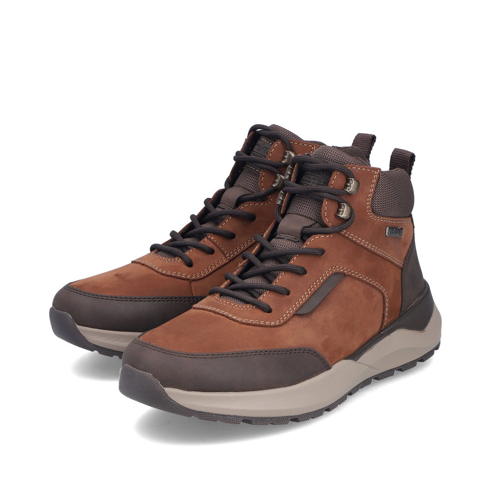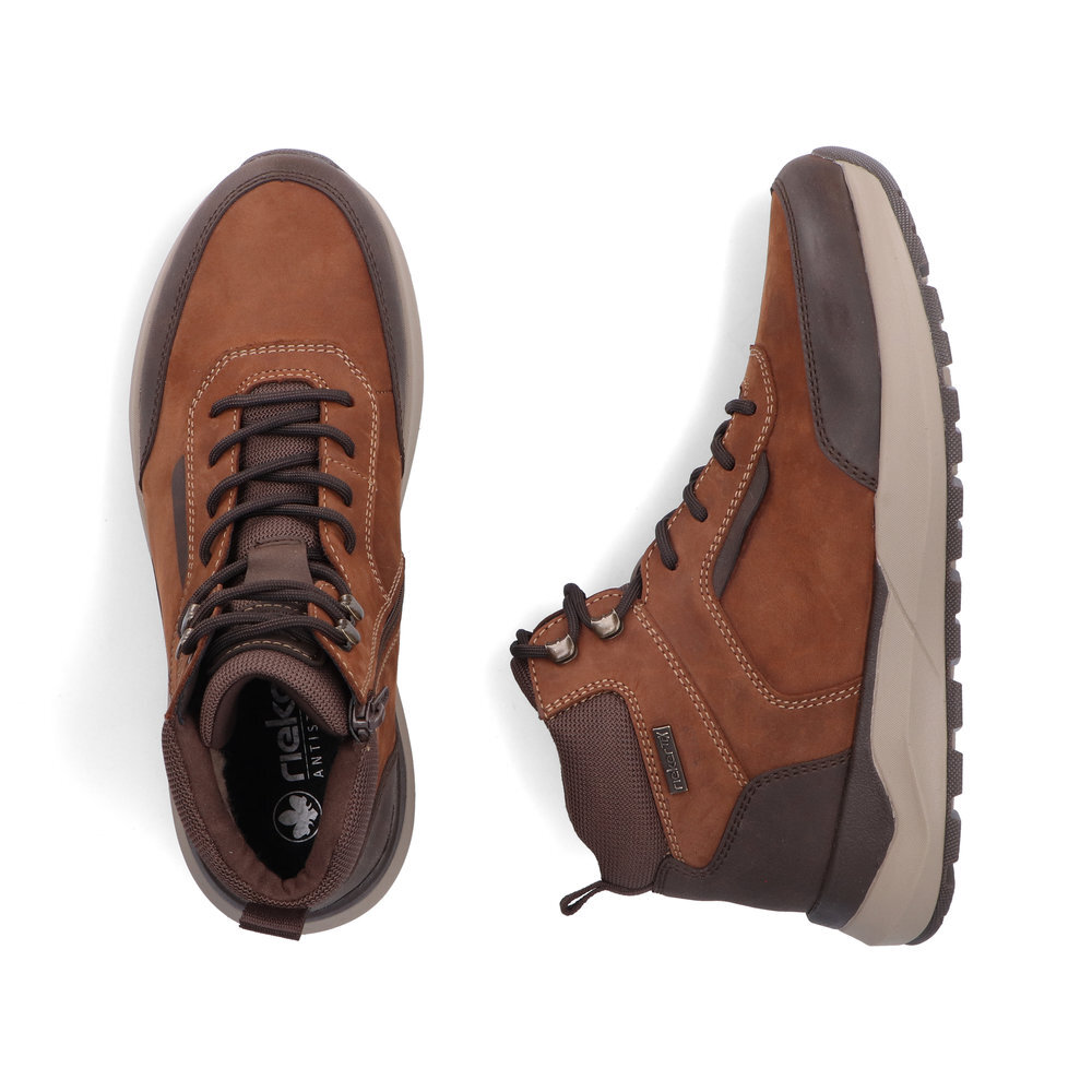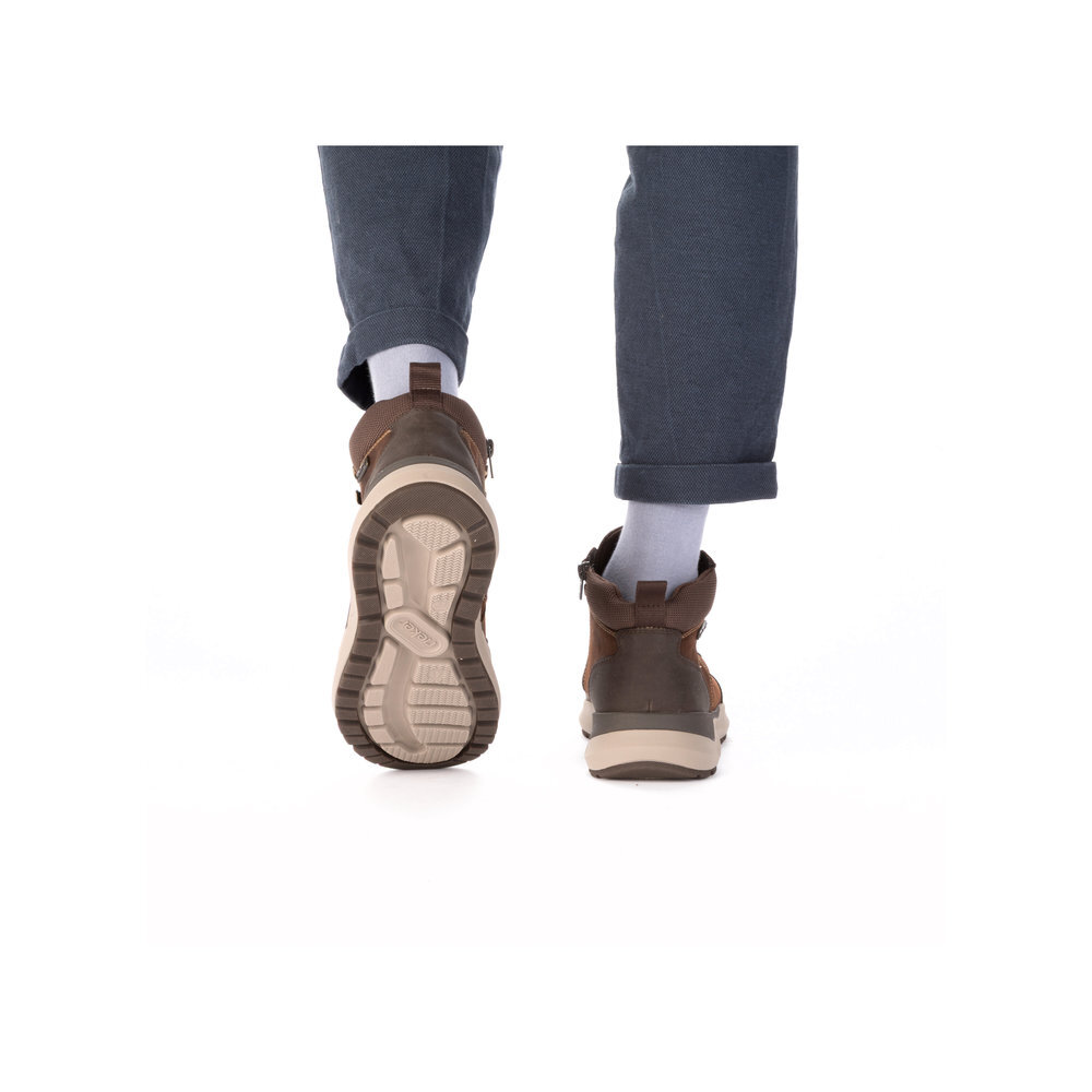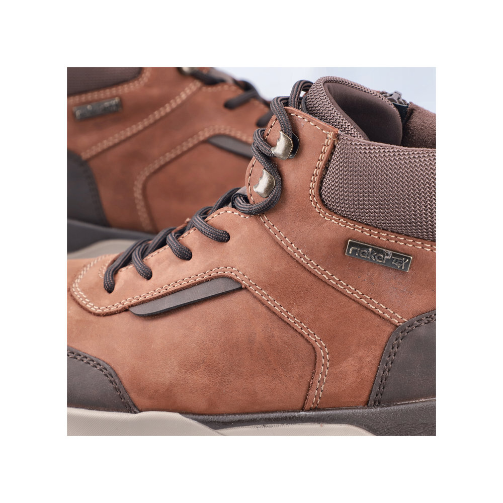 Pánske kožené zateplené topánky z kolekcie značky Rieker. Určite si ich zamilujete vďaka ich pohodlnosti a mäkkosti. Priestorný tvar špičky, mäkký a hrejivý materiál vás zahalí do pohodlia v mrazivých dňoch. Vďaka pevnému šnurovaniu tento model topánok pevne priľne k nohe po celej dĺžke. Viazanie zároveň esteticky dotvára zvršok obuvi v klasickom štýle. Kožené topánky sú zaručenou klasikou, zaručia Vám vysokú kvalitu a ide o pár, ktorý vám vydrží niekoľko sezón. Vďaka unikátnym vlastnostiam podošvy zažijete jedinečný pocit ľahkosti pri chôdzi. Ak denne trávite na nohách viac času tak značka Rieker je skutočne tou pravou voľbou pre Vás. Ide doslova o vychádzkovú obuv ktorá vydrží v plnej kvalite naozaj veľmi dlhý čas. TEX - funkčná vrstva, vďaka ktorej je topánka nepremokavá a napriek tomu priedušná.