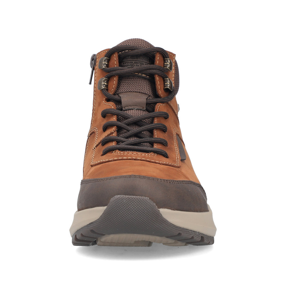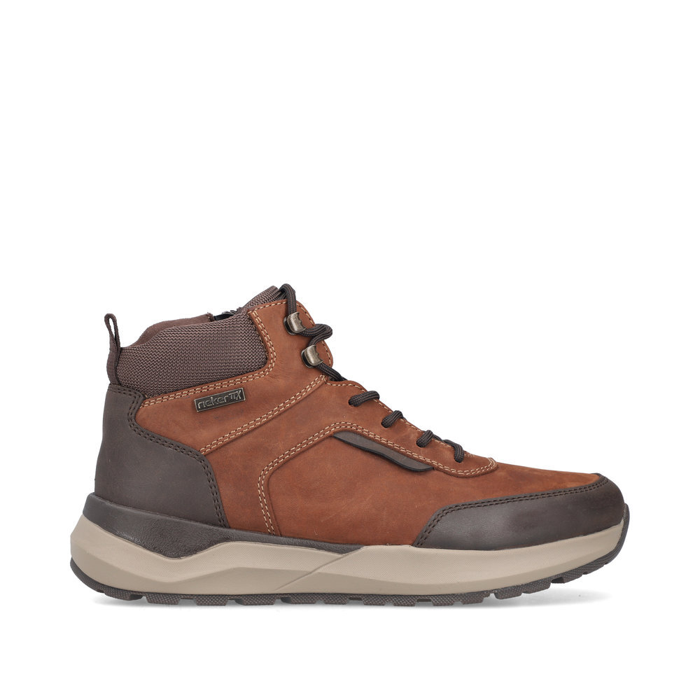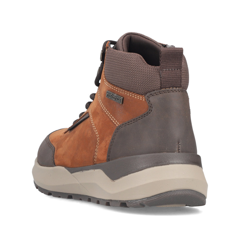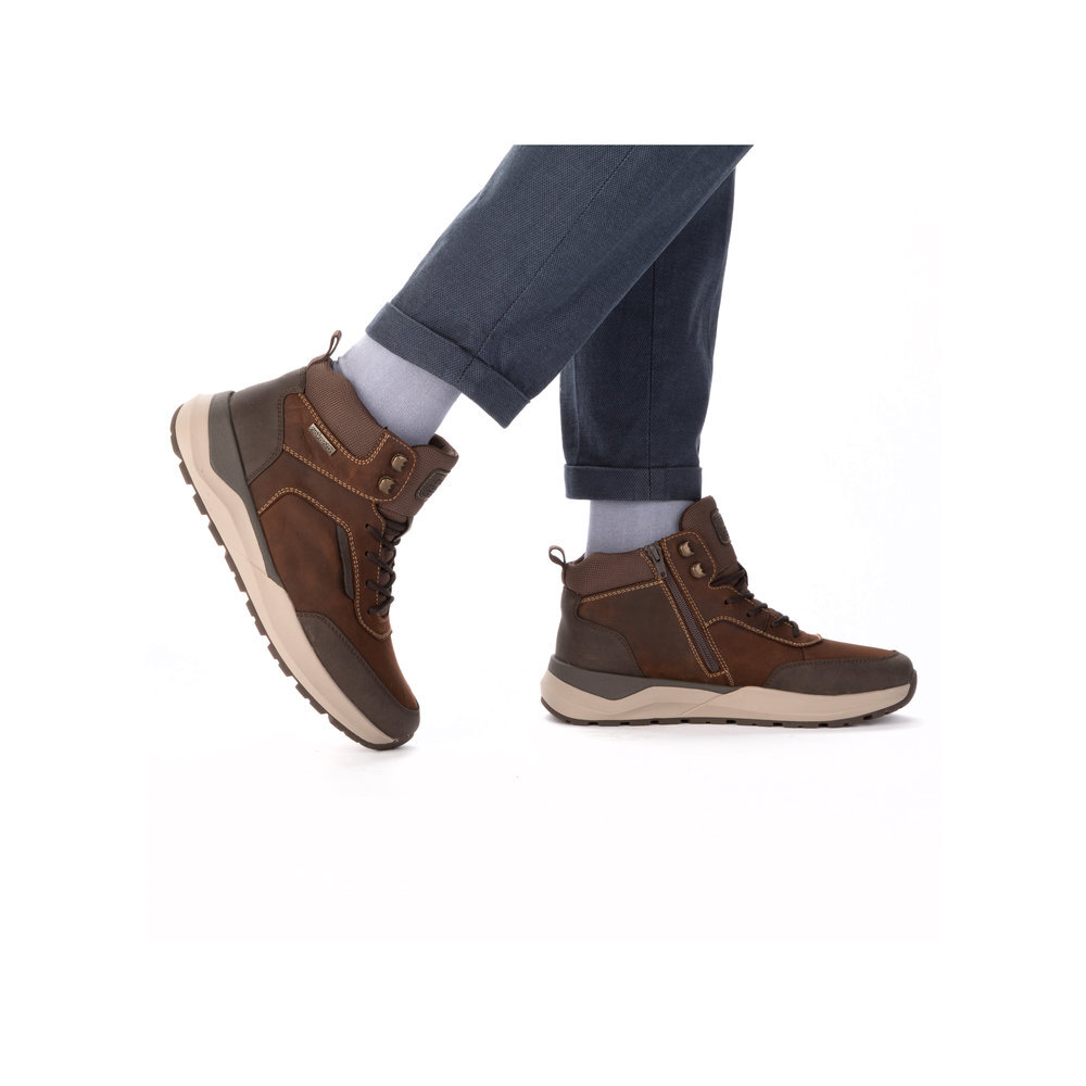 Pánske kožené zateplené topánky z kolekcie značky Rieker. Určite si ich zamilujete vďaka ich pohodlnosti a mäkkosti. Priestorný tvar špičky, mäkký a hrejivý materiál vás zahalí do pohodlia v mrazivých dňoch. Vďaka pevnému šnurovaniu tento model topánok pevne priľne k nohe po celej dĺžke. Viazanie zároveň esteticky dotvára zvršok obuvi v klasickom štýle. Kožené topánky sú zaručenou klasikou, zaručia Vám vysokú kvalitu a ide o pár, ktorý vám vydrží niekoľko sezón. Vďaka unikátnym vlastnostiam podošvy zažijete jedinečný pocit ľahkosti pri chôdzi. Ak denne trávite na nohách viac času tak značka Rieker je skutočne tou pravou voľbou pre Vás. Ide doslova o vychádzkovú obuv ktorá vydrží v plnej kvalite naozaj veľmi dlhý čas. TEX - funkčná vrstva, vďaka ktorej je topánka nepremokavá a napriek tomu priedušná.
