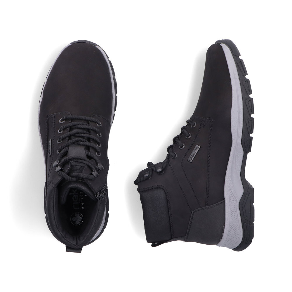 Pánske kožené zateplené topánky z kolekcie značky Rieker. Určite si ich zamilujete vďaka ich pohodlnosti a mäkkosti. Priestorný tvar špičky, mäkký a hrejivý materiál vás zahalí do pohodlia v mrazivých dňoch. Vďaka pevnému šnurovaniu tento model topánok pevne priľne k nohe po celej dĺžke. Viazanie zároveň esteticky dotvára zvršok obuvi v klasickom štýle. Kožené topánky sú zaručenou klasikou, zaručia Vám vysokú kvalitu a ide o pár, ktorý vám vydrží niekoľko sezón. Vďaka unikátnym vlastnostiam podošvy zažijete jedinečný pocit ľahkosti pri chôdzi. Ak denne trávite na nohách viac času tak značka Rieker je skutočne tou pravou voľbou pre Vás. Ide doslova o vychádzkovú obuv ktorá vydrží v plnej kvalite naozaj veľmi dlhý čas. TEX - funkčná vrstva, vďaka ktorej je topánka nepremokavá a napriek tomu priedušná.