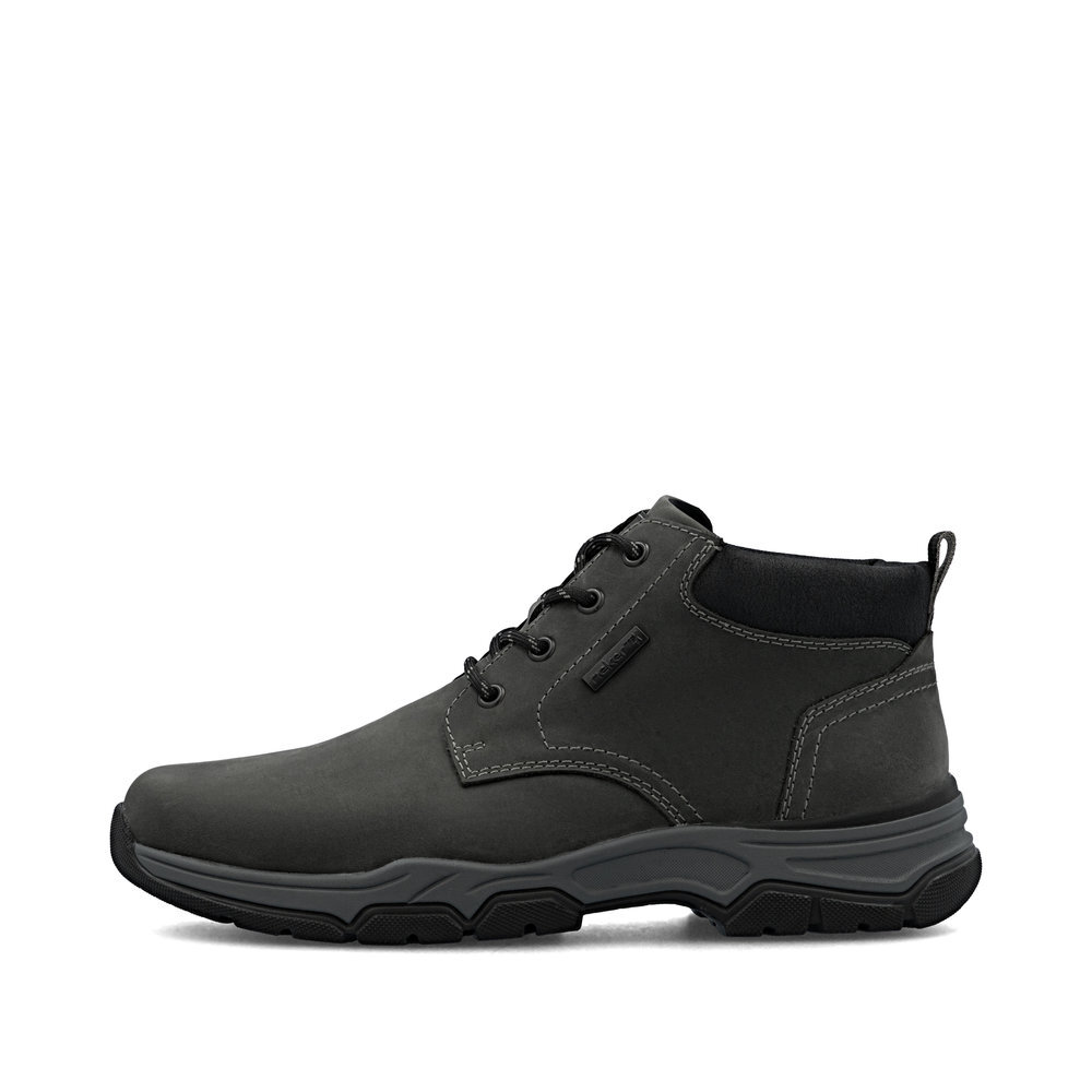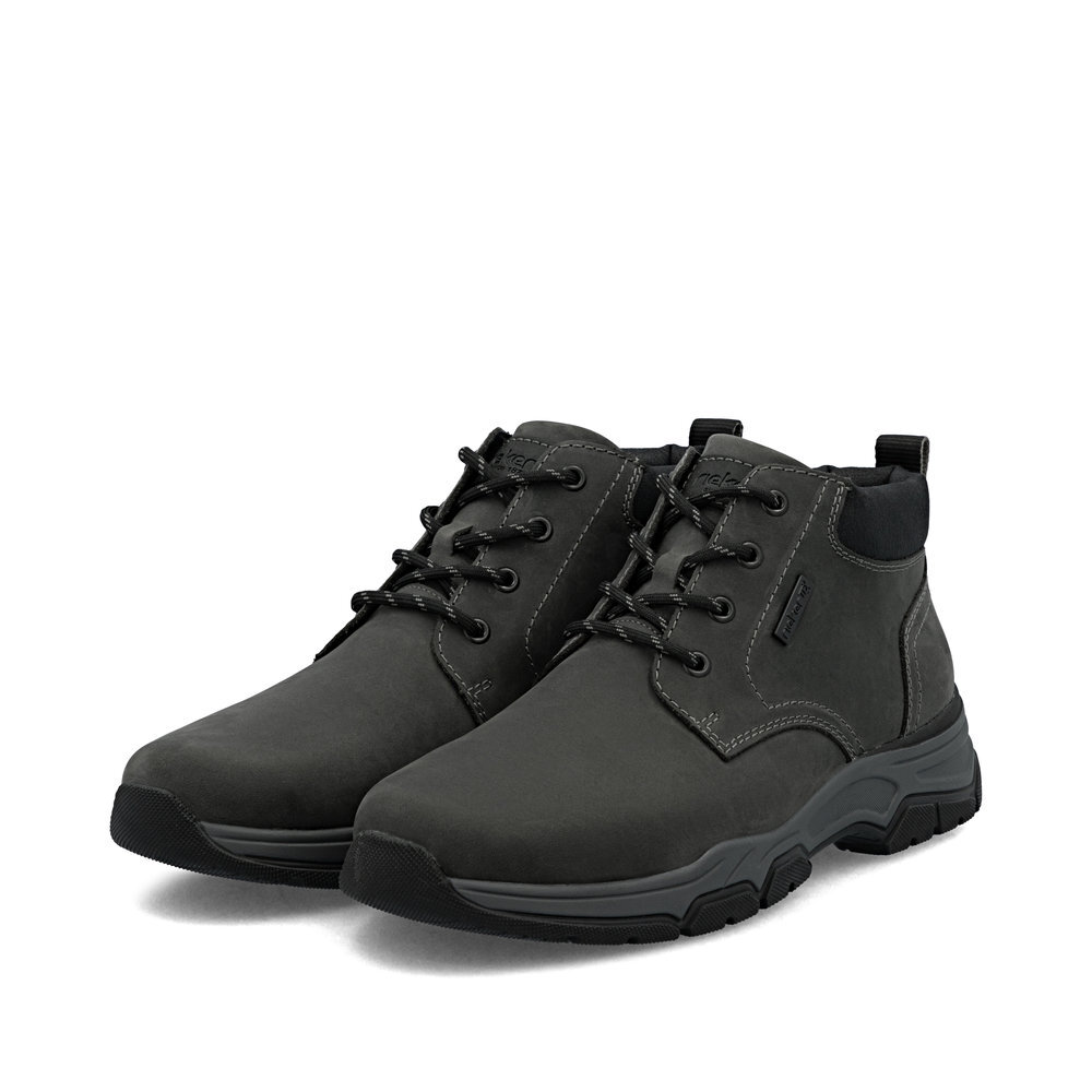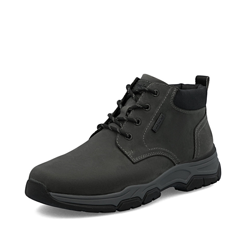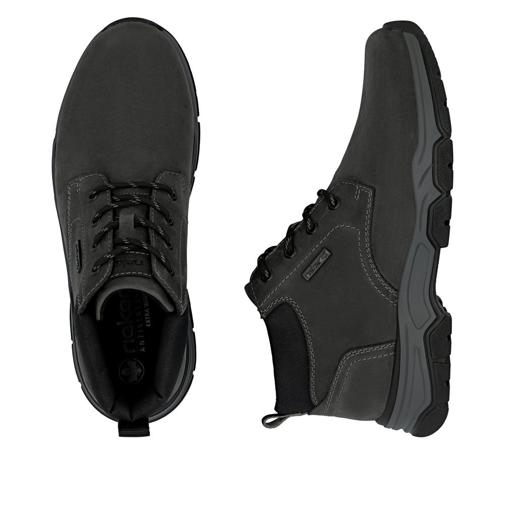 Pánske kožené zateplené topánky z kolekcie značky Rieker. Určite si ich zamilujete vďaka ich pohodlnosti a mäkkosti. Priestorný tvar špičky, mäkký a hrejivý materiál vás zahalí do pohodlia v mrazivých dňoch. Vďaka pevnému šnurovaniu tento model topánok pevne priľne k nohe po celej dĺžke. Viazanie zároveň esteticky dotvára zvršok obuvi v klasickom štýle. Kožené topánky sú zaručenou klasikou, zaručia Vám vysokú kvalitu a ide o pár, ktorý vám vydrží niekoľko sezón. Sú skvelým doplnením každého elegantného ale aj ležérneho outfitu. Pre všetkých, ktorí sa chcú v topánkach cítiť pohodlne a štýlovo. Vďaka unikátnym vlastnostiam podošvy zažijete jedinečný pocit ľahkosti pri chôdzi. Ak denne trávite na nohách viac času tak značka Rieker je skutočne tou pravou voľbou pre Vás. Ide doslova o vychádzkovú obuv ktorá vydrží v plnej kvalite naozaj veľmi dlhý čas. TEX - funkčná vrstva, vďaka ktorej je topánka nepremokavá a napriek tomu priedušná.