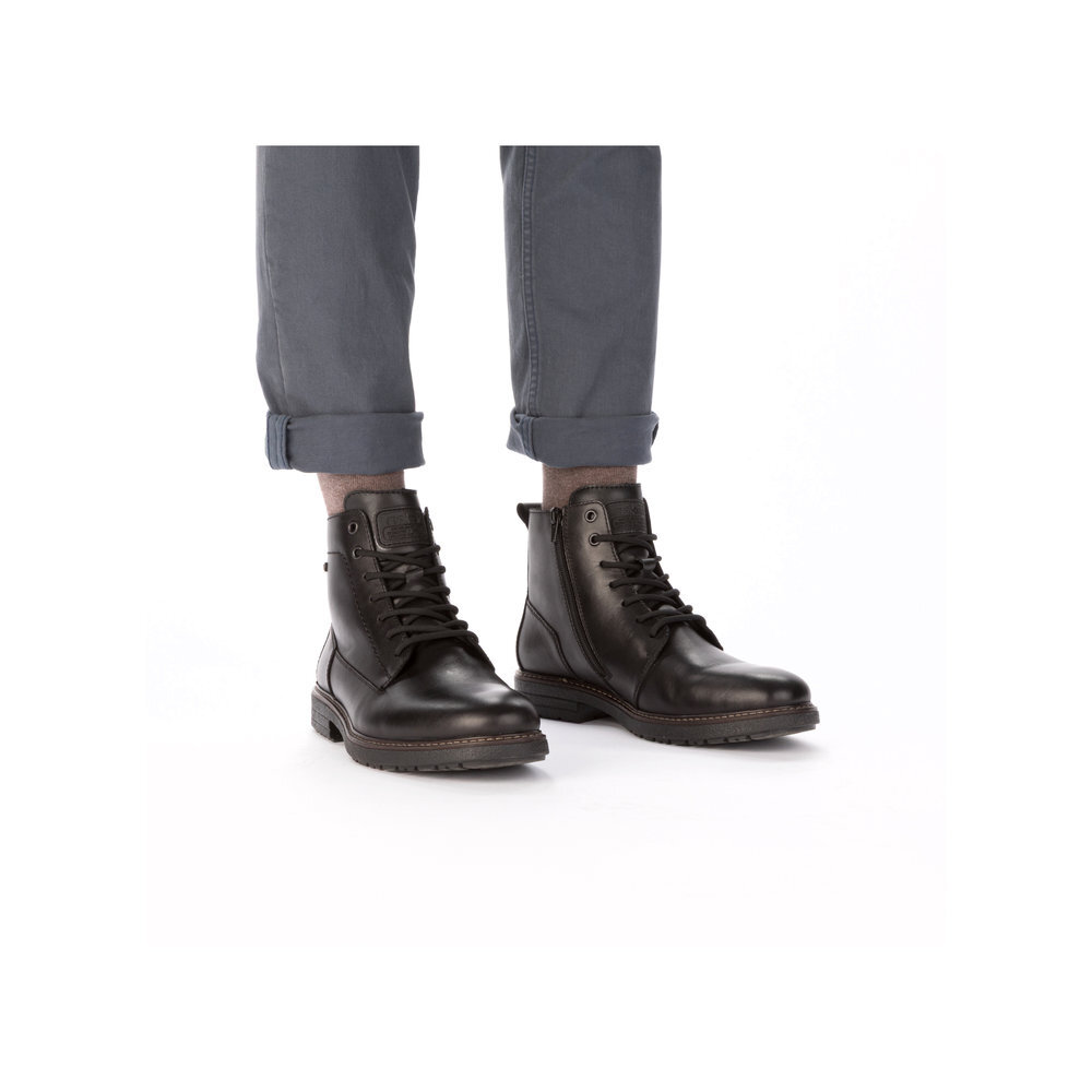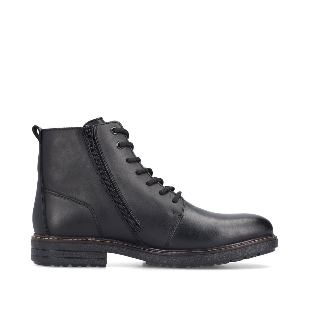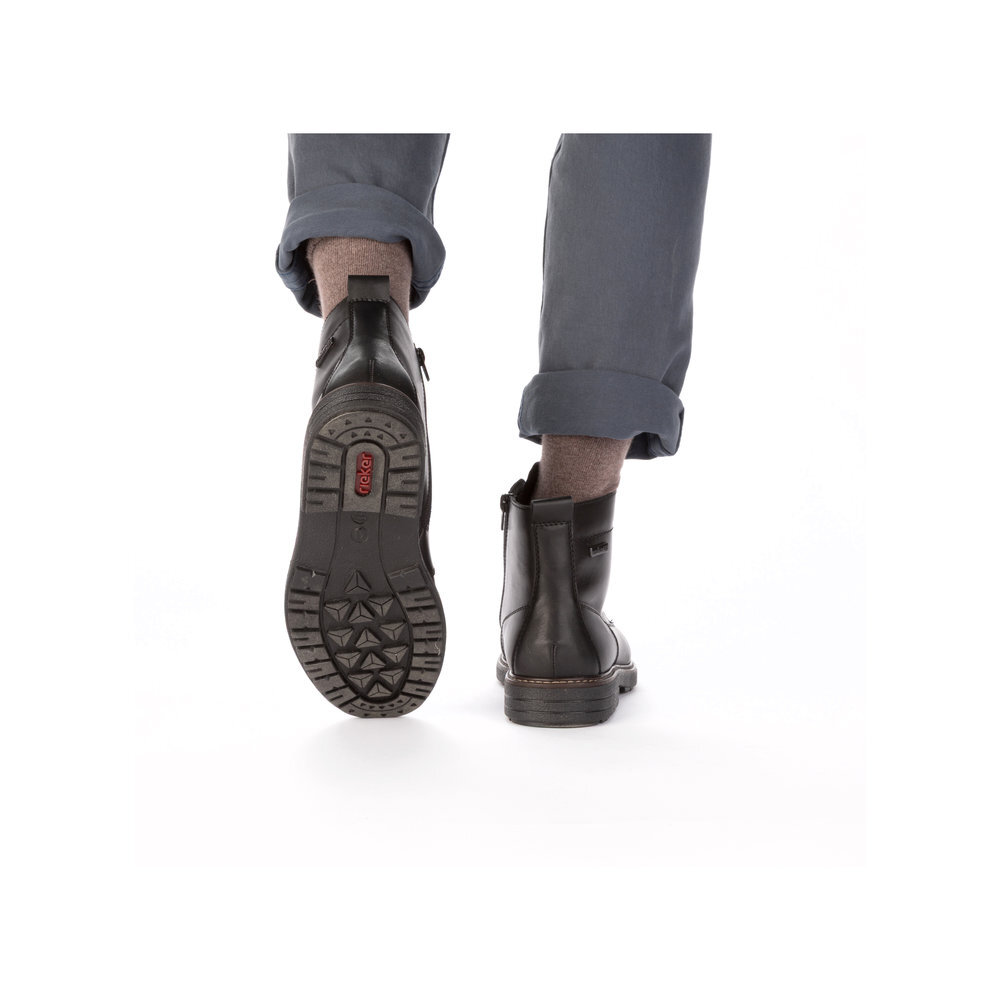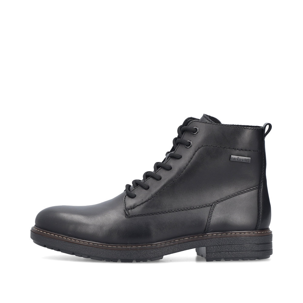 Pánske kožené zateplené topánky z kolekcie značky Rieker. Určite si ich zamilujete vďaka ich pohodlnosti a mäkkosti. Priestorný tvar špičky, mäkký a hrejivý materiál vás zahalí do pohodlia v mrazivých dňoch. Pre ľahké obutie je zapracovaný funkčný zips a šnúrky na šnurovanie. Vďaka pevnému šnurovaniu tento model topánok pevne priľne k nohe po celej dĺžke. Viazanie zároveň esteticky dotvára zvršok obuvi v klasickom štýle. Sú skvelým doplnením každého elegantného ale aj ležérneho outfitu. Kožené topánky sú zaručenou klasikou, zaručia Vám vysokú kvalitu a ide o pár, ktorý vám vydrží niekoľko sezón. Vďaka unikátnym vlastnostiam podošvy zažijete jedinečný pocit ľahkosti pri chôdzi. Ak denne trávite na nohách viac času tak značka Rieker je skutočne tou pravou voľbou pre Vás. Ide doslova o vychádzkovú obuv ktorá vydrží v plnej kvalite naozaj veľmi dlhý čas. TEX - funkčná vrstva, vďaka ktorej je topánka nepremokavá a napriek tomu priedušná.