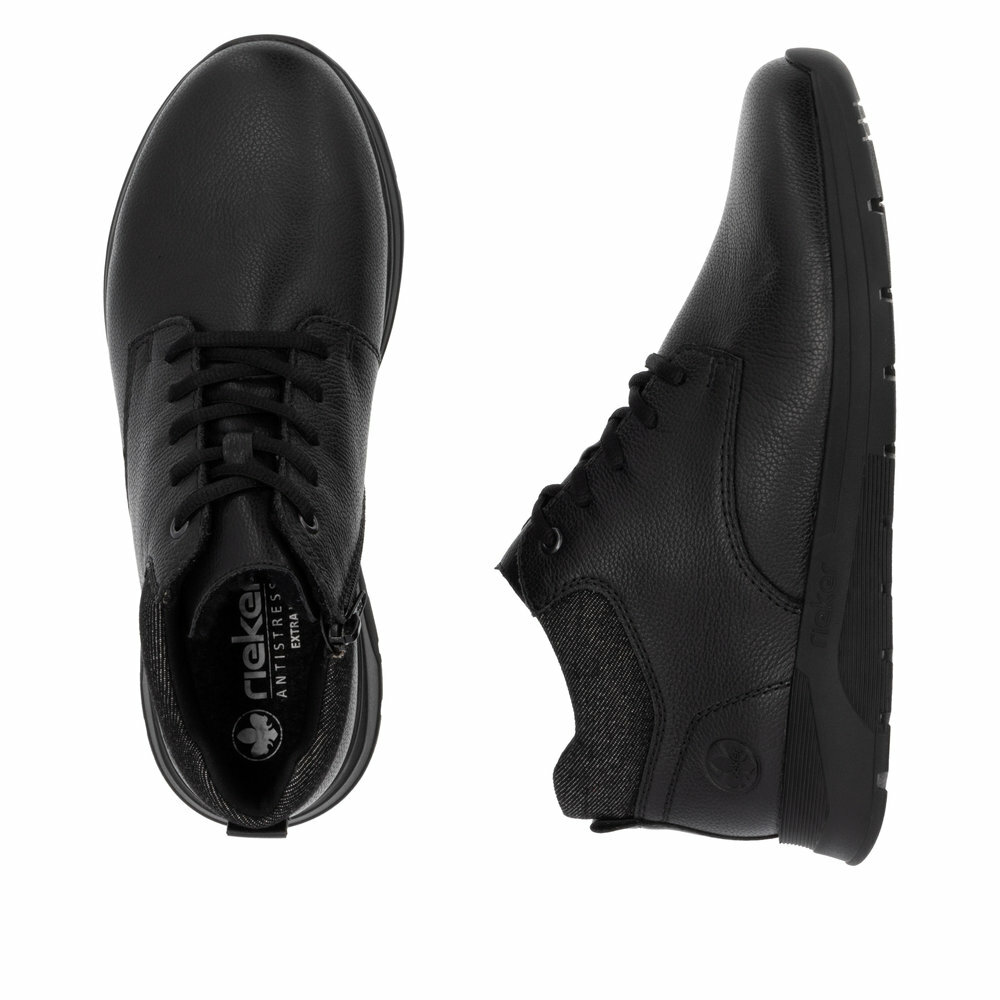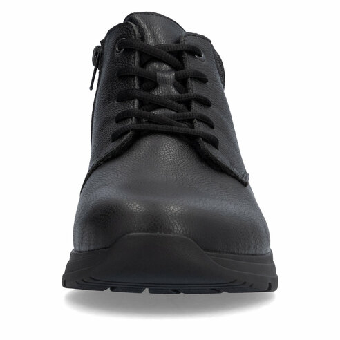 Pánske kožené zateplené topánky z kolekcie značky Rieker. Určite si ich zamilujete vďaka ich pohodlnosti a mäkkosti. Priestorný tvar špičky, mäkký a hrejivý materiál vás zahalí do pohodlia v mrazivých dňoch. Vďaka pevnému šnurovaniu tento model topánok pevne priľne k nohe po celej dĺžke. Viazanie zároveň esteticky dotvára zvršok obuvi v klasickom štýle. Kožené topánky sú zaručenou klasikou, zaručia Vám vysokú kvalitu a ide o pár, ktorý vám vydrží niekoľko sezón. Sú skvelým doplnením každého elegantného ale aj ležérneho outfitu. Pre všetkých, ktorí sa chcú v topánkach cítiť pohodlne a štýlovo. Vďaka unikátnym vlastnostiam podošvy zažijete jedinečný pocit ľahkosti pri chôdzi. Ak denne trávite na nohách viac času tak značka Rieker je skutočne tou pravou voľbou pre Vás. Ide doslova o vychádzkovú obuv ktorá vydrží v plnej kvalite naozaj veľmi dlhý čas.