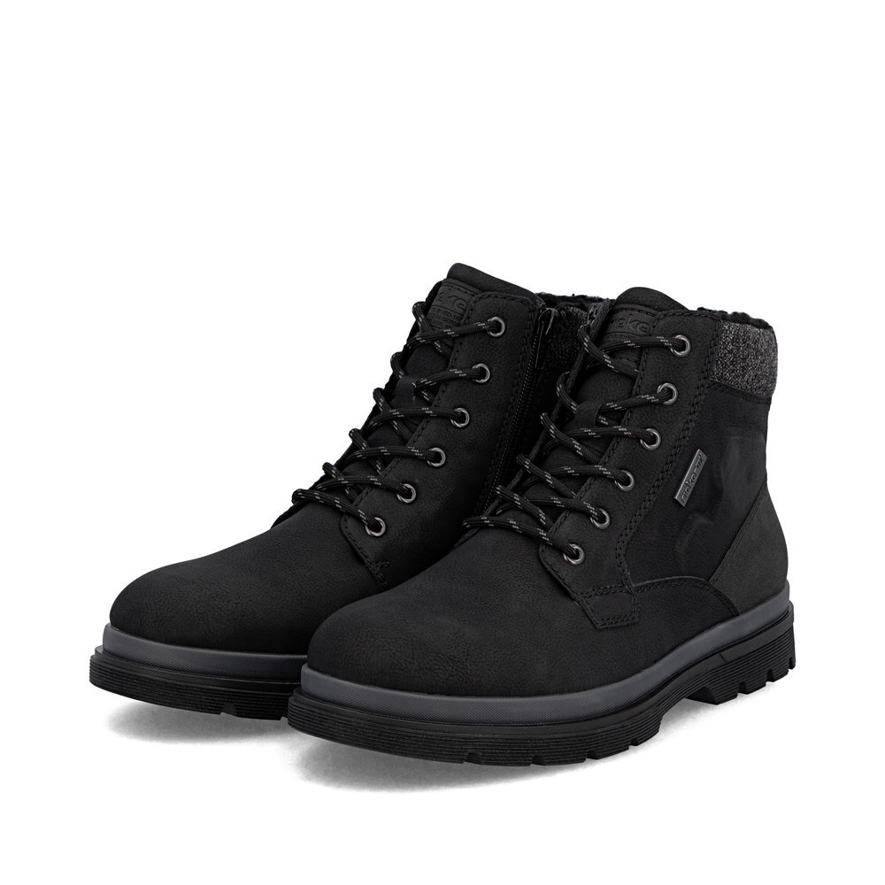 Pánske zateplené topánky z kolekcie značky Rieker. Priestorný tvar špičky, mäkký a hrejivý materiál vás zahalí do pohodlia v mrazivých dňoch. Určite si ich zamilujete vďaka ich pohodlnosti a mäkkosti. Pre ľahké obutie je zapracovaný funkčný zips a šnúrky na šnurovanie. Vďaka pevnému šnurovaniu tento model topánok pevne priľne k nohe po celej dĺžke. Viazanie zároveň esteticky dotvára zvršok obuvi v klasickom štýle. Vďaka unikátnym vlastnostiam podošvy zažijete jedinečný pocit ľahkosti pri chôdzi. Ak denne trávite na nohách viac času tak značka Rieker je skutočne tou pravou voľbou pre Vás. Ide doslova o vychádzkovú obuv ktorá vydrží v plnej kvalite naozaj veľmi dlhý čas. TEX - funkčná vrstva, vďaka ktorej je topánka nepremokavá a napriek tomu priedušná.