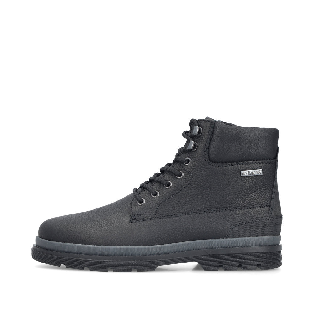 Pánske kožené zateplené topánky z kolekcie značky Rieker. Určite si ich zamilujete vďaka ich pohodlnosti a mäkkosti. Priestorný tvar špičky, mäkký a hrejivý materiál vás zahalí do pohodlia v mrazivých dňoch. Pre ľahké obutie je zapracovaný funkčný zips a šnúrky na šnurovanie. Vďaka pevnému šnurovaniu tento model topánok pevne priľne k nohe po celej dĺžke. Viazanie zároveň esteticky dotvára zvršok obuvi v klasickom štýle. Sú skvelým doplnením každého elegantného ale aj ležérneho outfitu. Kožené topánky sú zaručenou klasikou, zaručia Vám vysokú kvalitu a ide o pár, ktorý vám vydrží niekoľko sezón. Vďaka unikátnym vlastnostiam podošvy zažijete jedinečný pocit ľahkosti pri chôdzi. Ak denne trávite na nohách viac času tak značka Rieker je skutočne tou pravou voľbou pre Vás. Ide doslova o vychádzkovú obuv ktorá vydrží v plnej kvalite naozaj veľmi dlhý čas. TEX - funkčná vrstva, vďaka ktorej je topánka nepremokavá a napriek tomu priedušná.